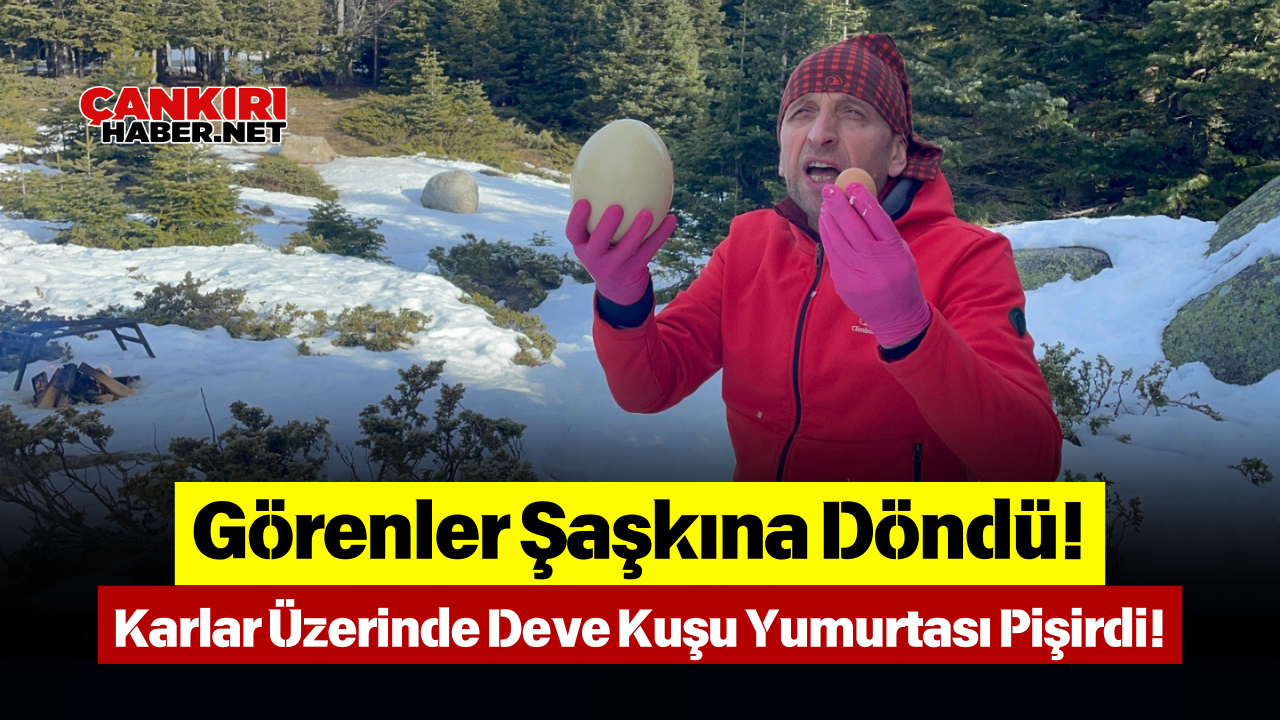 Bursa’da doğada yemek yapmayı tutku haline getiren 53 yaşındaki Süleyman Ateştepe, sıra dışı bir lezzet deneyimi yaşamak için Ağrı’nın Doğubeyazıt ilçesinden özel olarak getirttiği 1,5 kilogram ağırlığındaki deve kuşu yumurtasını Uludağ’ın karla kaplı zirvesinde pişirdi.