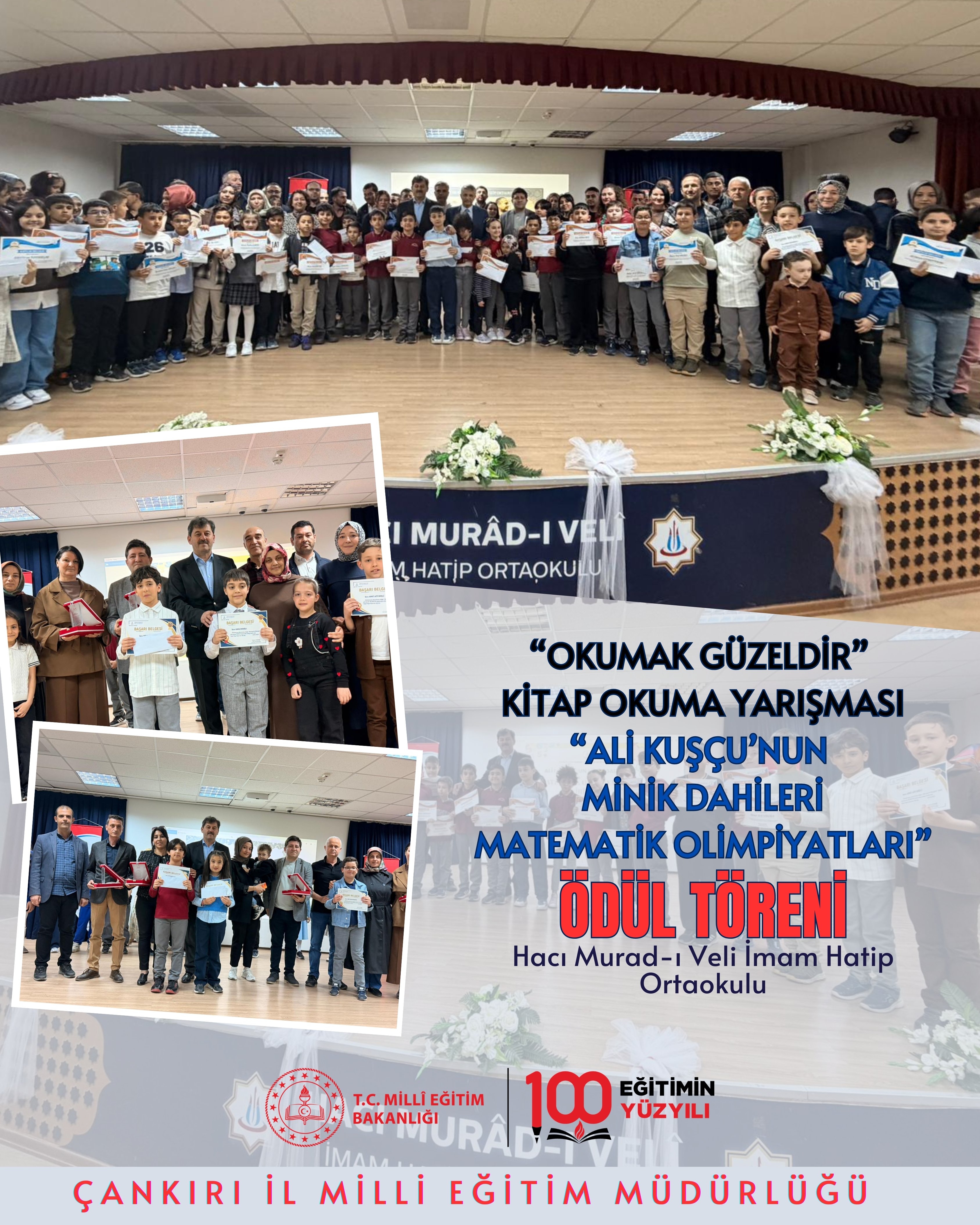 Çankırı’da eğitim alanında düzenlenen etkinlikler öğrencilerin katılımıyla anlamlı bir programa dönüştü. Hacı Murad-ı Veli İmam Hatip Ortaokulunda gerçekleştirilen “Okumak Güzeldir” Kitap Okuma Yarışması ile “Ali Kuşçu’nun Minik Dahileri Matematik Olimpiyatları” ödül töreni, yoğun katılım ve coşku içerisinde yapıldı.