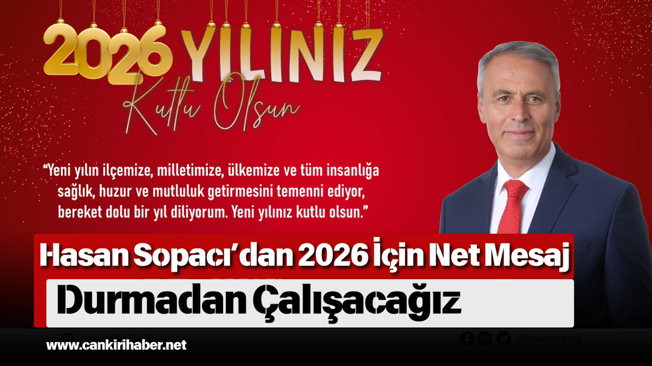 Mesajının sonunda yeni yıl temennisinde bulunan Başkan Hasan Sopacı, 2026 yılının Çerkeş’e, ülkeye ve tüm insanlığa sağlık, huzur ve mutluluk getirmesini dileyerek, tüm hemşehrilerinin yeni yılını kutladı.