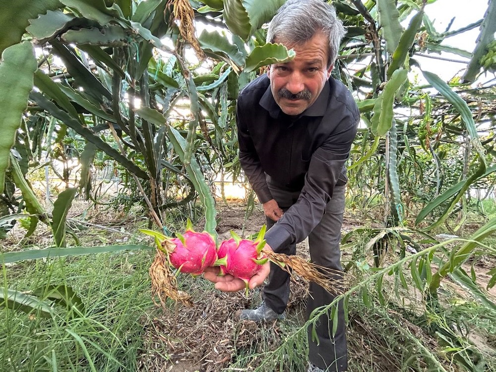 59 yaşındaki Kaba, üç yıl önce ejder meyvesi üretimine başladığını belirterek, “Geçen yıl bir dönümden bir tondan fazla mahsul aldım. Bu yıl ikinci dönümü de kırmızı tür olarak ektim. Meyvelerin bakımını domates, biber veya kavun gibi yapıyoruz; ilacını, suyunu ve gübresini zamanında veriyoruz. Ejder meyvesi hem soğuğu hem sıcağı sevmeyen bir bitki, buna rağmen verimimiz güzel” dedi.