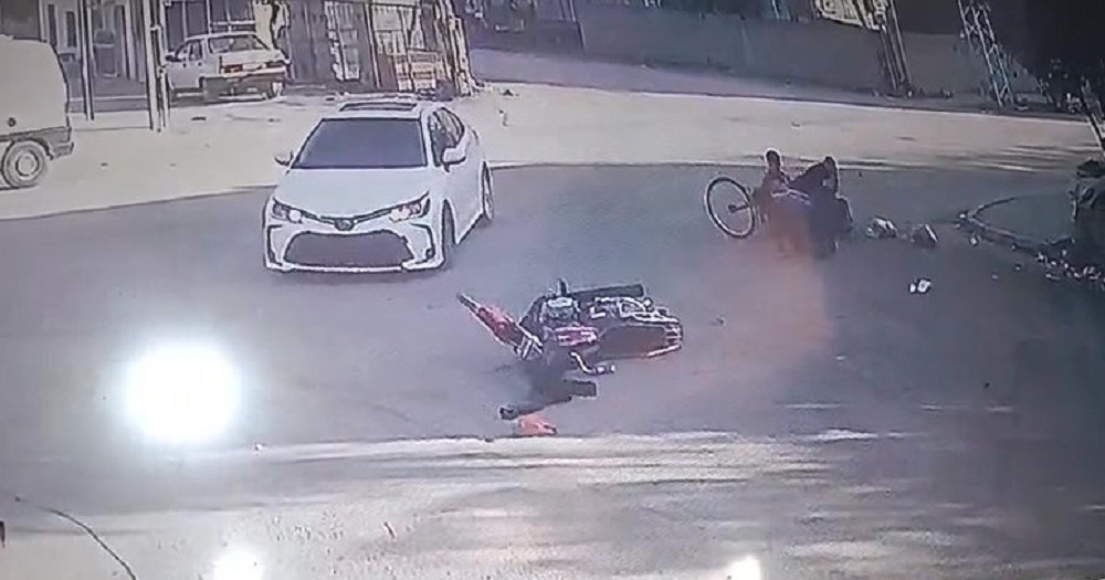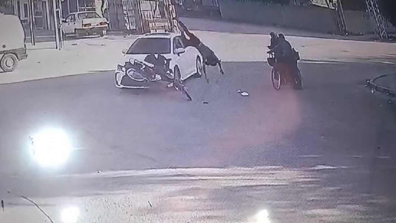 Çarpışmanın etkisiyle kontrolden çıkan motosiklet devrildi ve üzerindeki iki kişi metrelerce savruldu. Motosikletin sürücüsü, yol kenarında yürüyen yaşlı bir çiftin üzerine düştü. Kaza anı, çevredeki güvenlik kameralarına yansıdı. Kazada motosikletin üzerindeki iki kişi ile yaşlı çift hafif şekilde yaralandı.