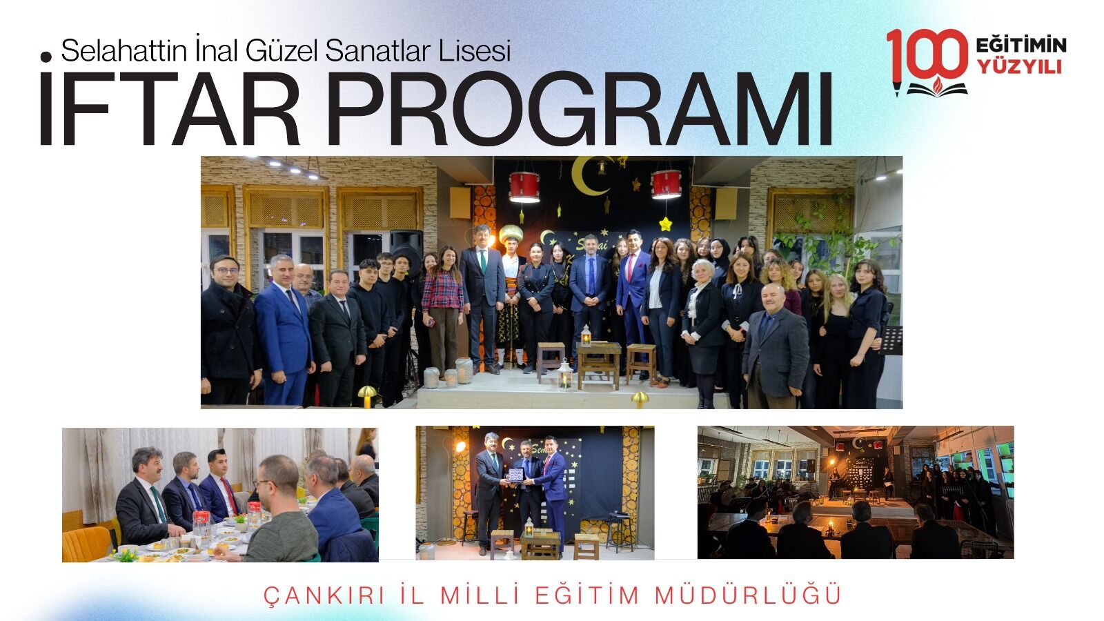 Hayat Boyu Öğrenme Genel Müdürü Sayın Cengiz Mete, Çankırı ziyareti kapsamında Selahattin İnal Güzel Sanatlar Lisesi’nde düzenlenen iftar programıyla programını tamamladı. İl Millî Eğitim Müdürümüz Sayın Ayhan Işık’ın da katıldığı programda, okul idarecileri, öğretmenler ve öğrencilerle birlikte aynı sofrada buluşuldu.