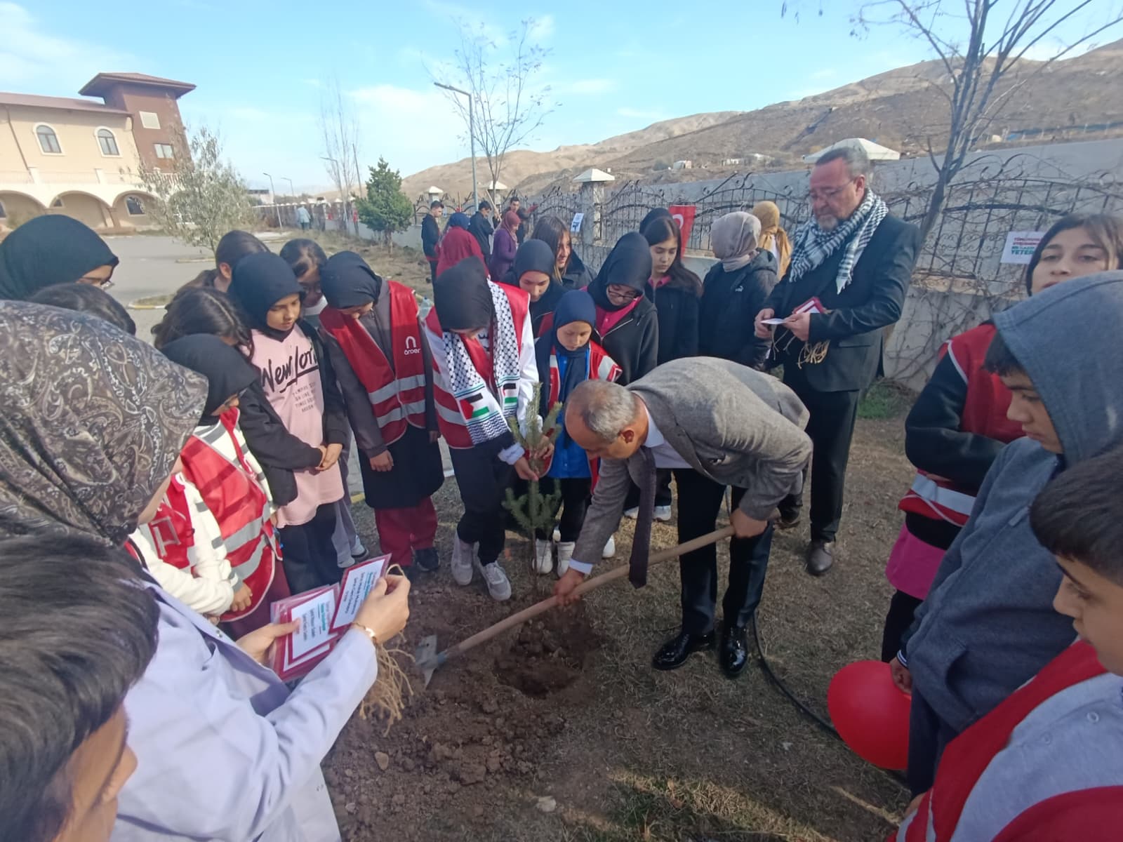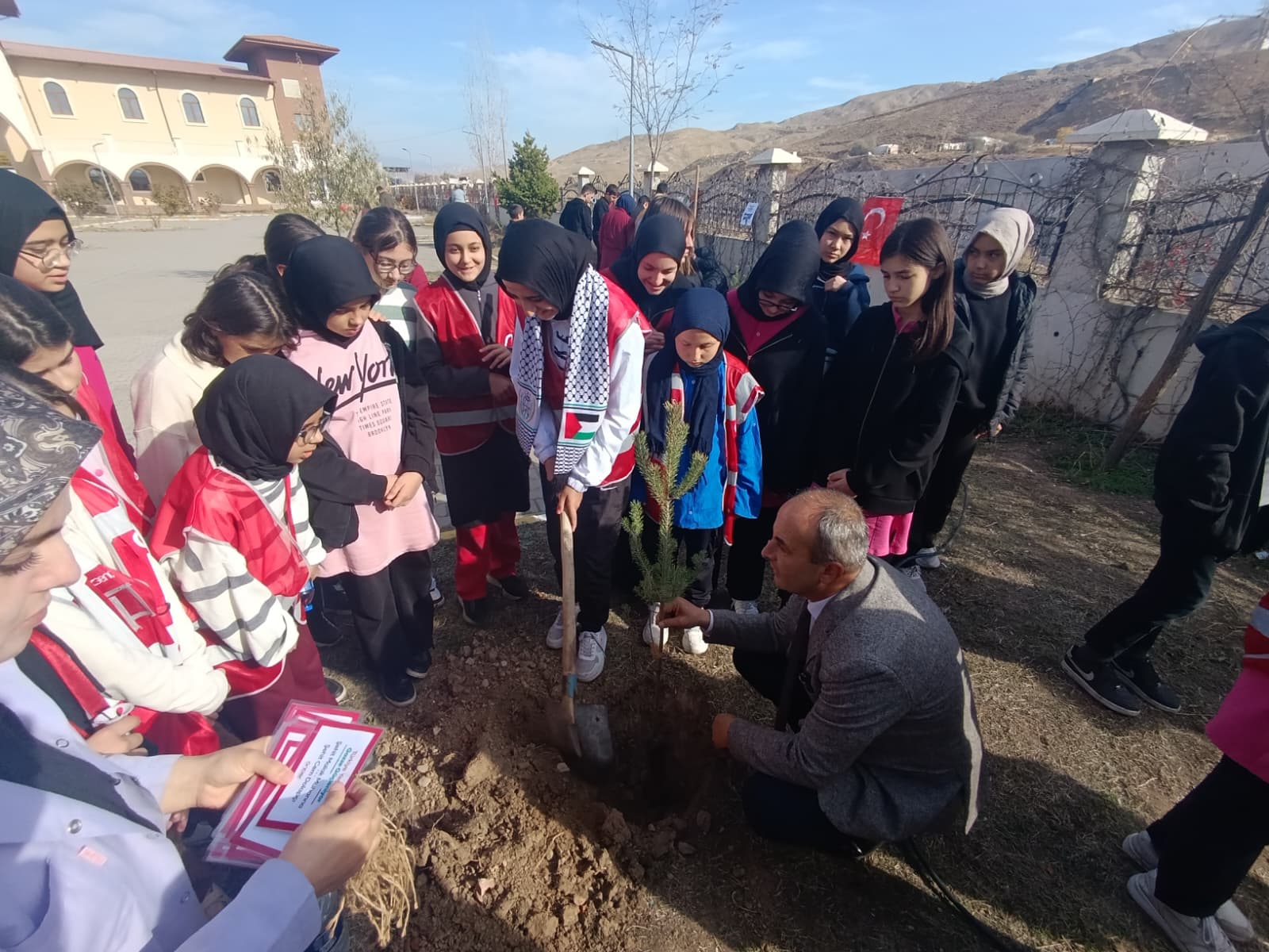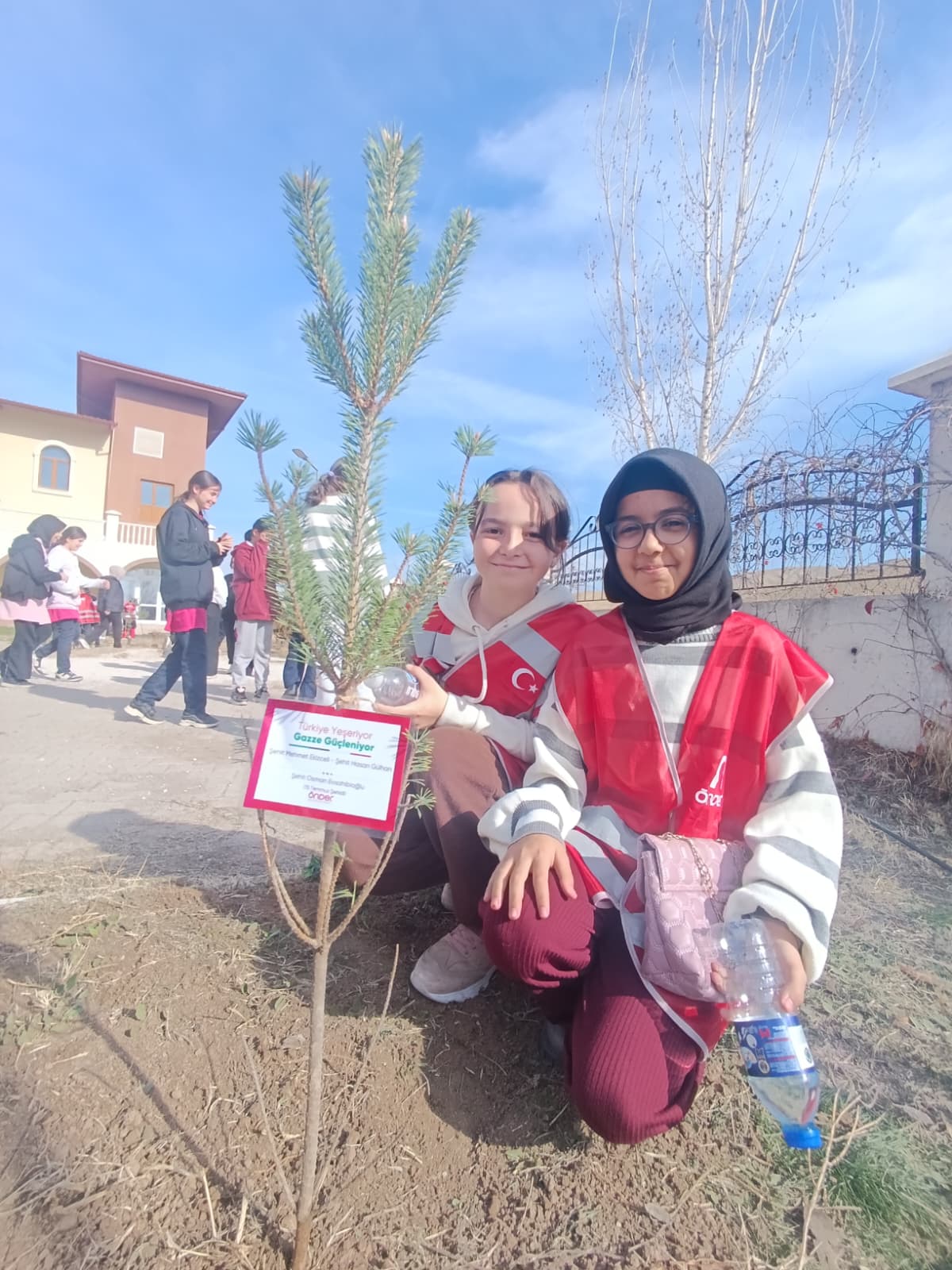 Türkiye genelinde 81 ilde eş zamanlı yapılan etkinlikte öğrenciler, doğaya nefes olacak fidanları toprakla buluştururken, Gazze’de devam eden insani krize dikkat çekildi. Programa İl Milli Eğitim Müdürü Muammer Öztürk ve İŞKUR Müdür Yardımcısı Mehmet Gayret de katılarak öğrencilere destek verdi.