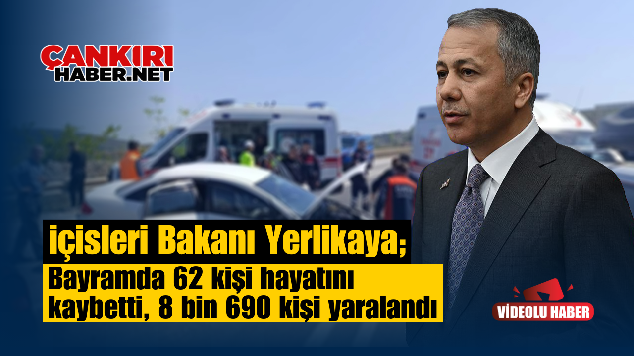 İçişleri Bakanı Ali Yerlikaya, Kurban Bayramı'nın ilk 7 gününde yaşanan trafik kazalarında 62 kişinin yaşamını yitiridiğini, 8 bin 690 kişinin ise yaralandığını açıkladı.