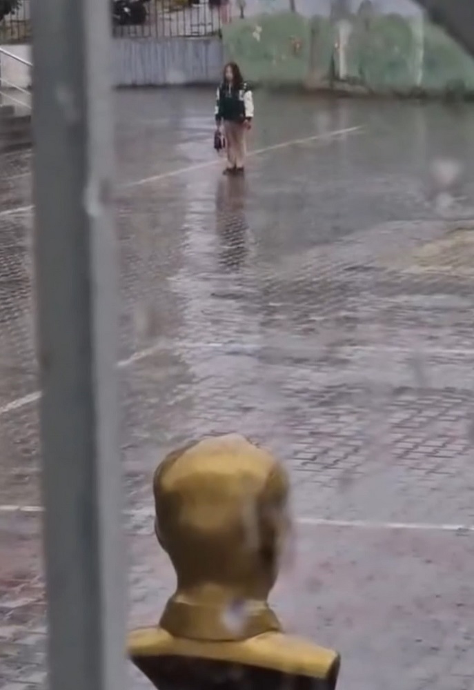 Kentte etkili olan yağış nedeniyle marş, okulun hoparlör sistemi üzerinden tüm sınıflarda aynı anda okutuldu. Bu sırada derse geç kalan bir kız öğrenci, okul bahçesinde durarak marşa eşlik etti. Yağmur altında yerinden ayrılmayan öğrenci, bitene kadar İstiklal Marşı’nı okudu.