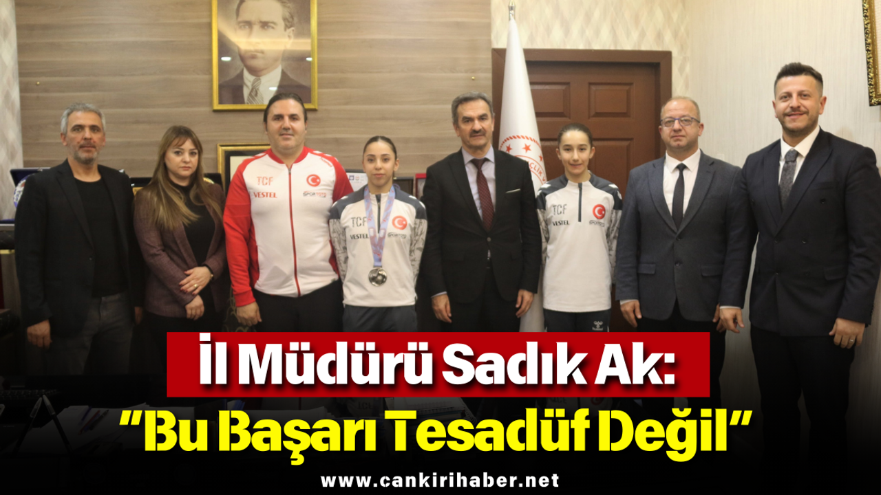 ÖZEL HABER/Çankırı, uluslararası arenada elde edilen büyük başarıyla gurur dolu bir gün yaşadı. Dünya ikincisi olan Milli Cimnastikçimiz Ada Kanat, yine milli sporcu Fatma Rana Gökçe, Antrenör Berat Demir ile Ada Kanat’ın anne ve babası, Çankırı Gençlik ve Spor İl Müdürü Sadık Ak tarafından makamda kabul edildi. İl Müdürü Ak, genç sporcuları tebrik ederek gösterdikleri üstün performansın Türkiye adına büyük bir gurur kaynağı olduğunu vurguladı.