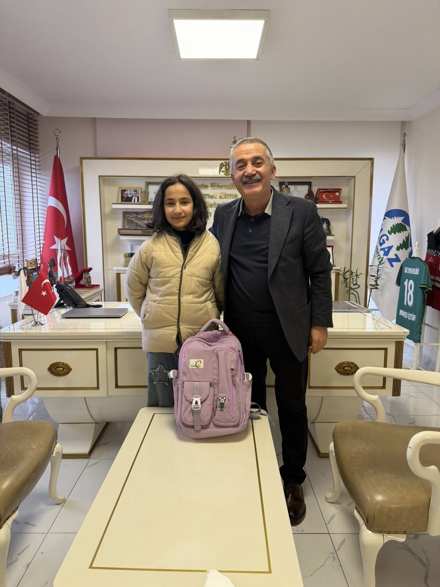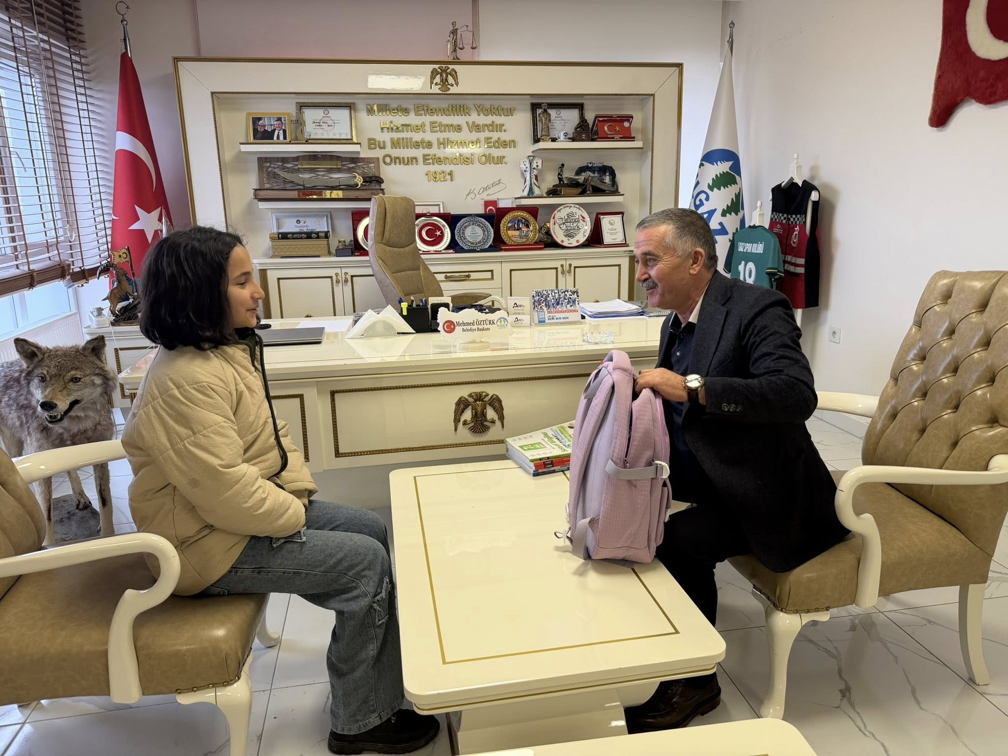 Yavuz Sultan Selim Ortaokulu 7. sınıf öğrencisi Aybüke, Liselere Geçiş Sistemi (LGS) sınavlarına hazırlanmak amacıyla belediyeye gelerek kaynak kitap talebinde bulundu. Öğrencinin bu isteğini geri çevirmeyen Başkan Öztürk, Aybüke’ye çanta ve kaynak kitap seti hediye etti.