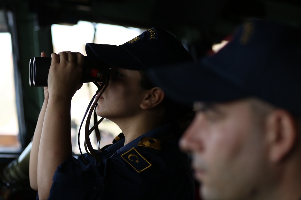 Türk Silahlı Kuvvetleri’nin gözbebeği Deniz Kuvvetleri Komutanlığı’nda görev yapan kadın subaylar, Mavi Vatan’ın güvenliğinde kritik roller üstleniyor. Savaş gemilerinde aktif olarak görev alan kadın personel, donanmanın harekât, eğitim, mühimmat yönetimi ve idari sorumluluk gibi birçok alanında üstün başarı sergiliyor. Deniz Kuvvetleri Komutanlığı bünyesinde 200’ün üzerinde rütbeli kadın personel görev yapıyor.