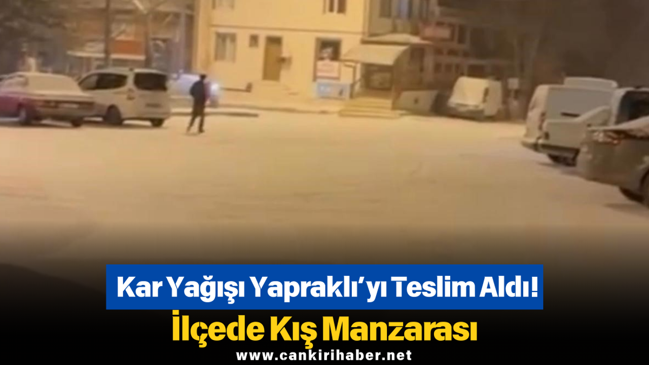 Çankırı’nın Yapraklı ilçesinde hava sıcaklıklarının sıfır derecenin altına düşmesiyle birlikte kar yağışı etkili olmaya başladı. Gece saatlerinde başlayan yağış, kısa sürede ilçe genelinde etkisini artırarak cadde ve sokakları beyaz örtüyle kapladı.