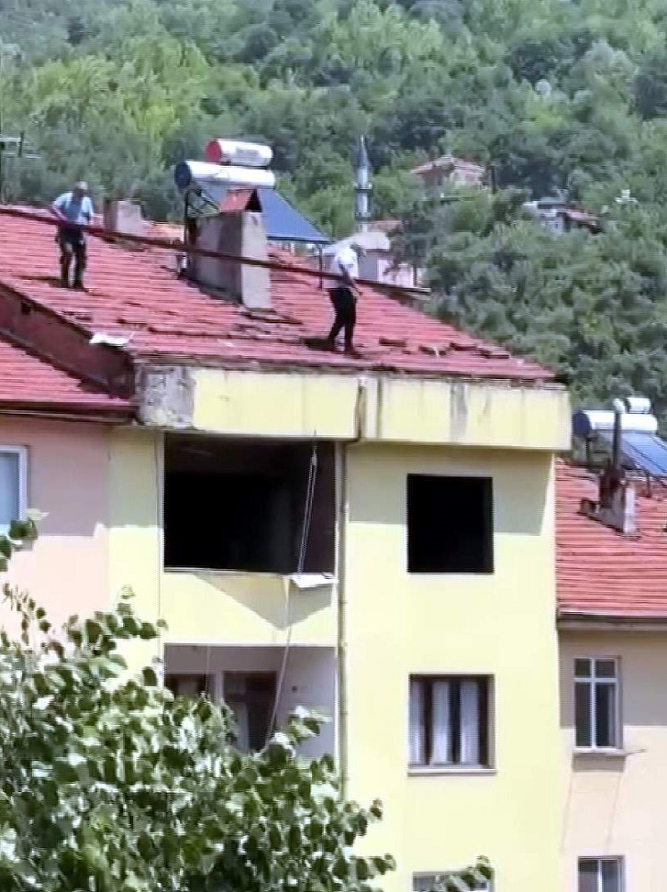 Karabük’ün Yenice ilçesinde, 5 katlı bir binanın çatısında güvenlik önlemi almadan çalışan işçiler büyük tehlike yaşattı. Koruyucu ekipman ve güvenlik halatı kullanmayan işçilerin tehlikeli anları, vatandaşlar tarafından cep telefonuyla kaydedildi.