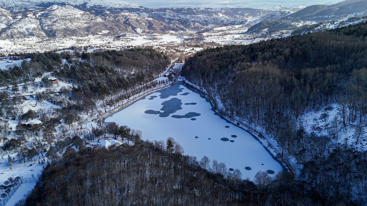 Ankara’nın Çubuk ilçesinde yüksek kesimlerde etkili olan kar yağışı sonrası Karagöl Tabiat Parkı beyaza büründü. Karla kaplanan göl çevresi ve orman dokusu, bölgeyi adeta kartpostallık görüntülere taşıdı. Şehrin kalabalığından uzaklaşmak isteyen başkentlilerin yanı sıra çevre illerden gelen ziyaretçiler de kış manzarasını yerinde görmek için Karagöl’e yöneldi.