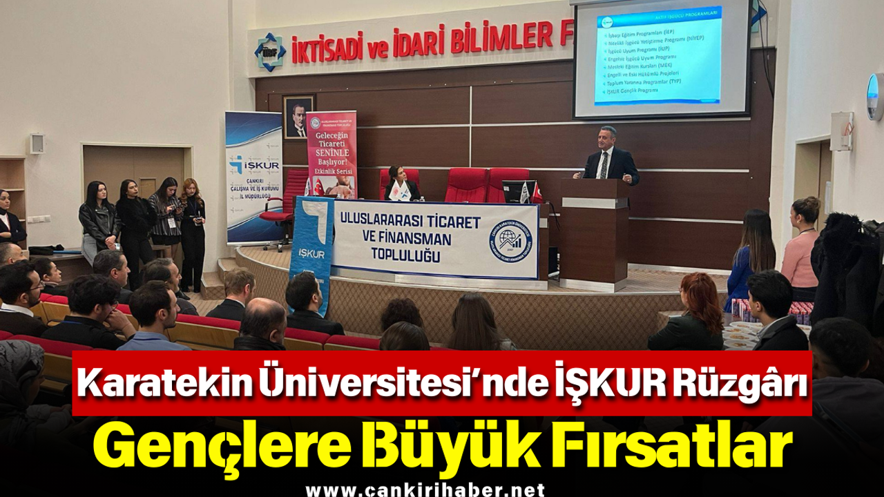 Çankırı Karatekin Üniversitesi İktisadi ve İdari Bilimler Fakültesi Uluslararası Ticaret ve Finansman Bölümü öğrencileri, “Kariyer Yolunda İŞKUR Yanında” programı kapsamında Türkiye İş Kurumu (İŞKUR) yetkilileriyle bir araya geldi. Programda, gençlerin istihdam süreçlerine daha güçlü hazırlanabilmesi amacıyla İŞKUR’un sunduğu hizmetler kapsamlı şekilde ele alındı.