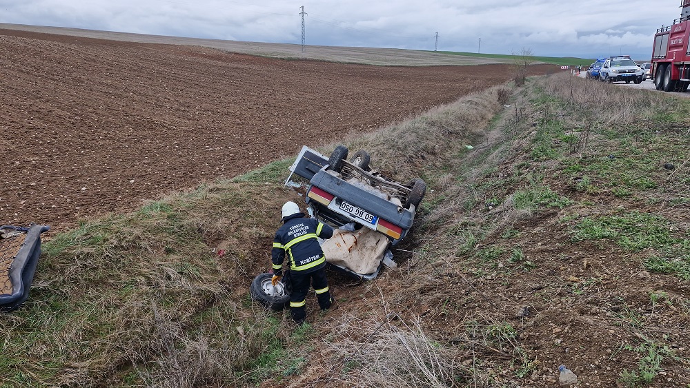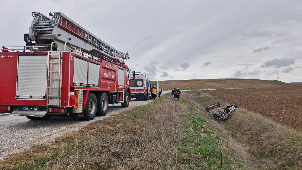 Kazayı gören çevredeki vatandaşlar durumu hemen 112 Acil Çağrı Merkezi’ne bildirdi. Olay yerine kısa sürede sağlık, jandarma ve Alaca Belediyesi'ne bağlı itfaiye ekipleri sevk edildi. Takla atan araç içerisinde sıkışan sürücü Hüseyin Ö. ve yolcu Nuriye Ö., ekiplerin müdahalesiyle çıkarılarak sağlık ekiplerine teslim edildi.