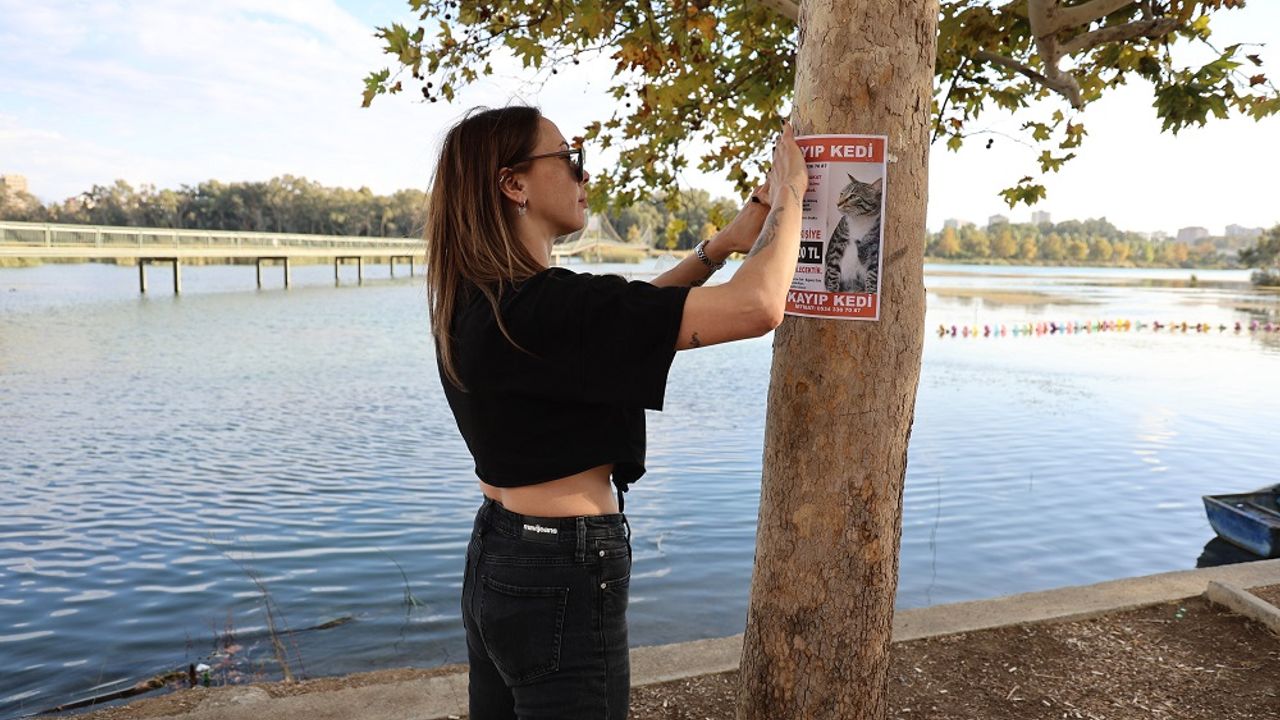 Ertesi gün yeniden parka gelen genç kadın, çevredeki vatandaşlara kedisini sordu ve “Bulana 100 bin lira ödül var” yazılı ilanlar bastırarak ağaçlara, çöp konteynerlerine ve duvarlara astı.