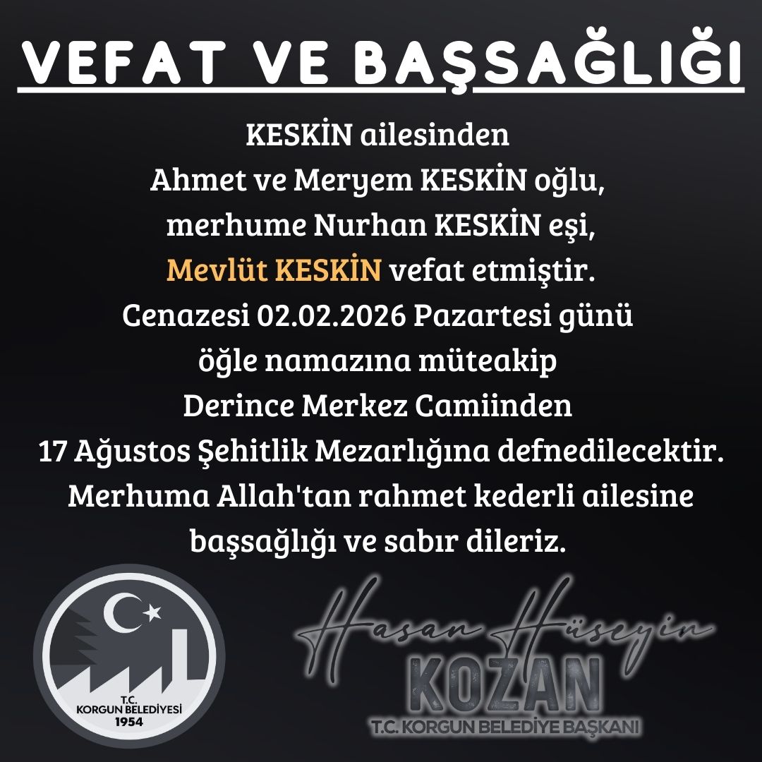 Mevlüt Keskin’in vefatının ardından çok sayıda taziye mesajı paylaşıldı. Keskin ailesine yönelik başsağlığı dilekleri sosyal medya üzerinden iletilirken, Korgun Belediye Başkanı Hasan Hüseyin Kozan da bir taziye mesajı yayımlayarak merhuma Allah’tan rahmet, ailesine ve yakınlarına sabır dileğinde bulundu.