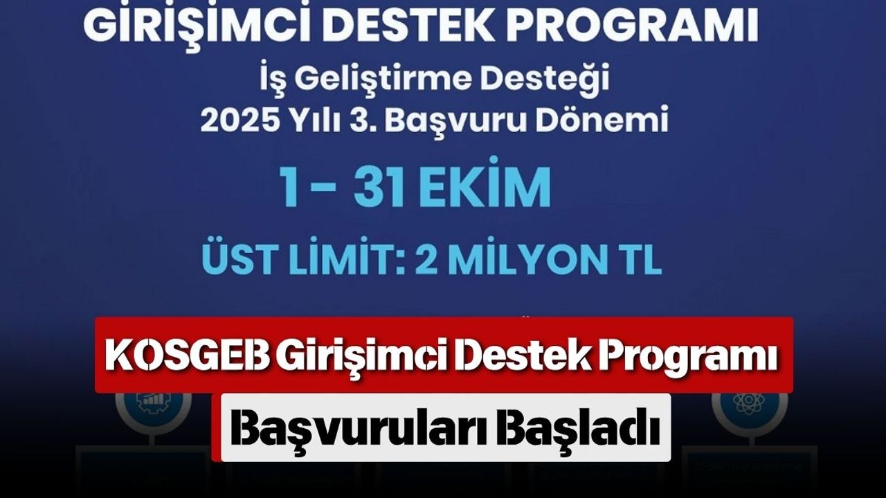 Küçük ve Orta Ölçekli İşletmeleri Geliştirme ve Destekleme İdaresi Başkanlığı (KOSGEB), girişimcilere yönelik destek programını güncelledi. 2025 yılı 3. dönem başvuruları, 1-31 Ekim tarihleri arasında kabul edilecek. İş Geliştirme Desteği kapsamında girişimcilere 2 milyon TL’ye kadar finansman sağlanacak.
