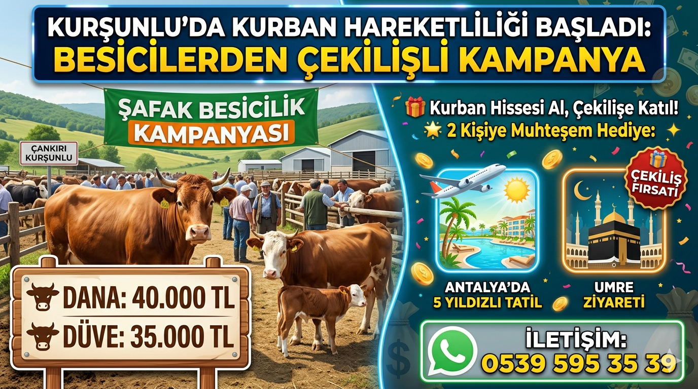 Kurban Bayramı’nın yaklaşmasıyla birlikte Çankırı’nın Kurşunlu ilçesinde kurbanlık satışlarında yoğunluk yaşanmaya başladı. İlçede faaliyet gösteren besiciler, bu yıl hem uygun fiyatlar hem de dikkat çeken kampanyalarla vatandaşın ilgisini çekiyor.