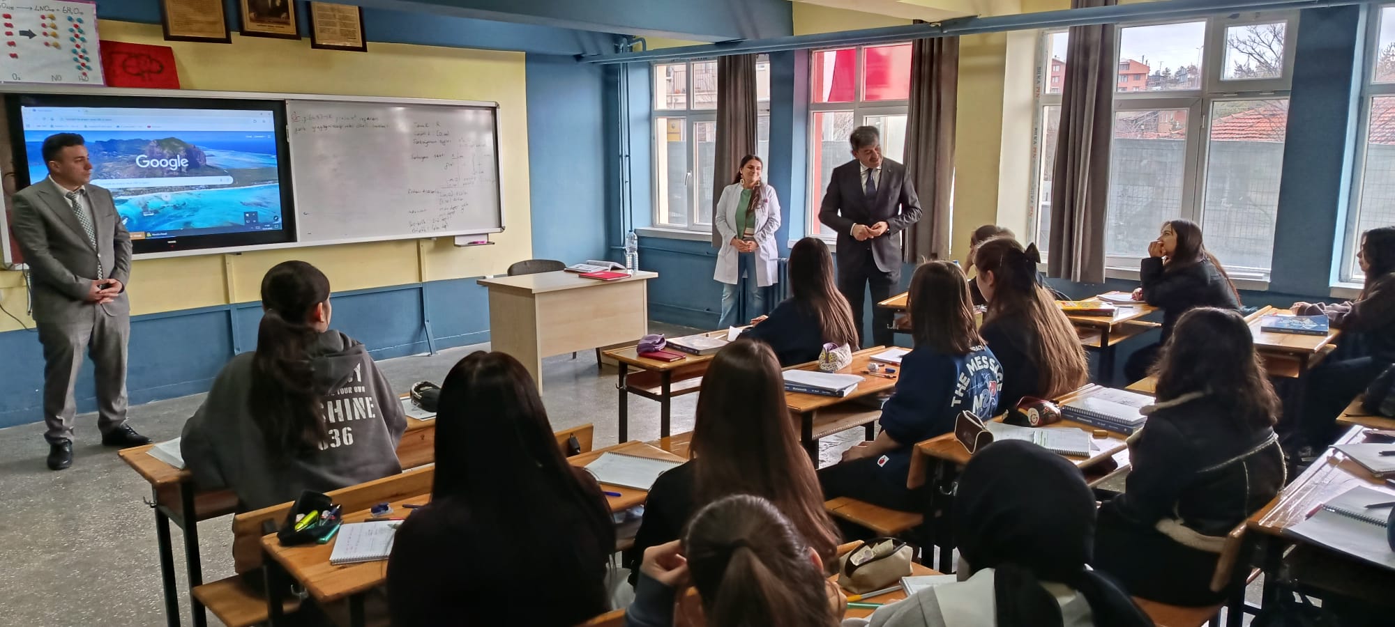 Okulda sınıfları gezen İl Millî Eğitim Müdürü Ayhan Işık, öğrencilerle bir araya gelerek işlenen dersleri gözlemledi. Öğrencilerle sohbet eden Işık, eğitim süreci hakkında öğretmenlerden bilgi aldı.