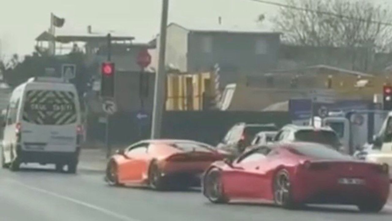 Bursa’nın Yıldırım ilçesi 11 Eylül Bulvarı’nda, Lamborghini Huracan ve Ferrari marka iki lüks otomobil sürücüsü, trafikte tehlikeli manevralar gerçekleştirdi. Sürücüler, ani şerit değiştirerek diğer araçların önüne geçti, kırmızı ışık ihlali yaptı ve trafik güvenliğini riske attı. Olay anı, bir vatandaşın cep telefonu kamerasına yansıdı.