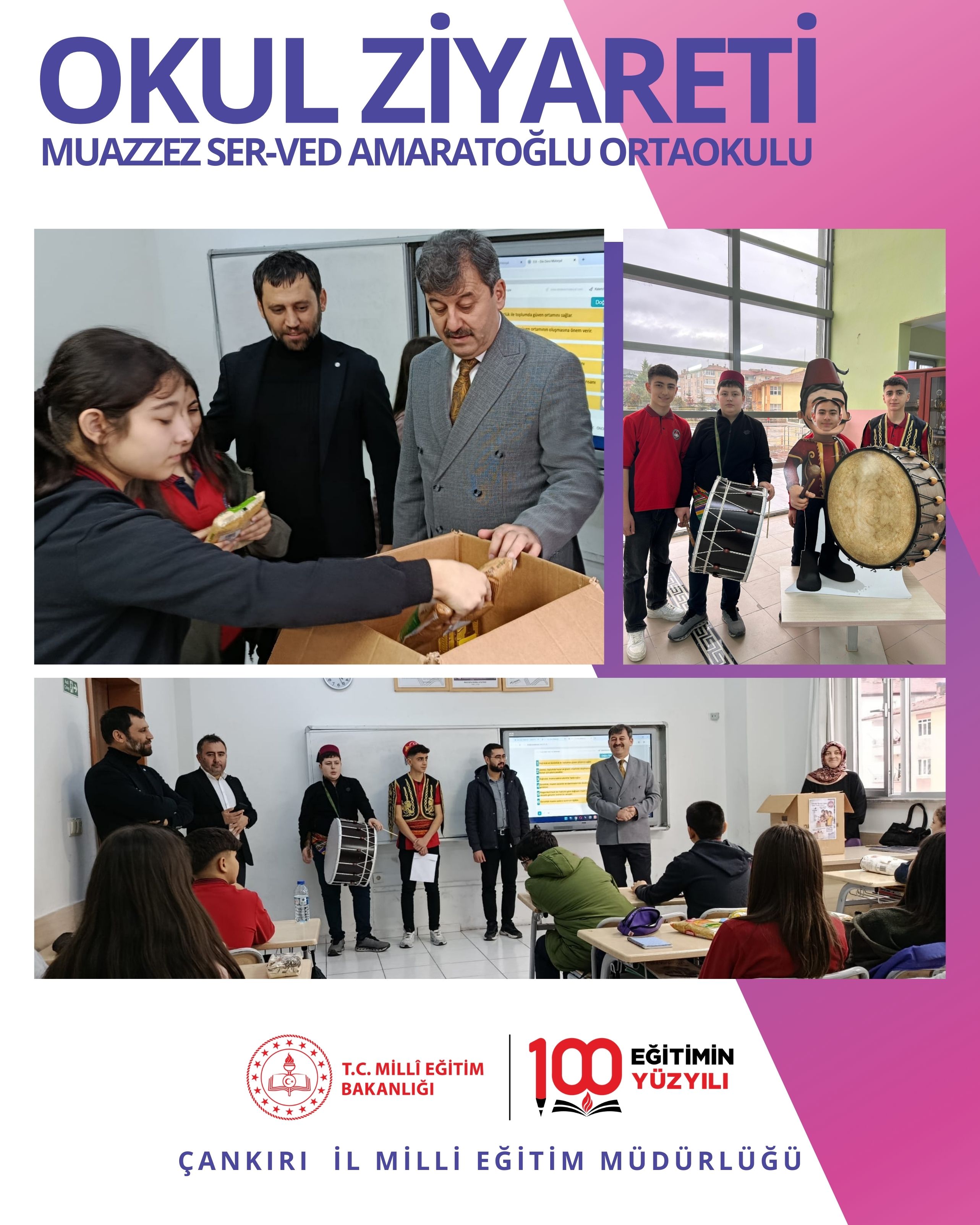 Çankırı İl Millî Eğitim Müdürü Ayhan Işık, okul ve kurum ziyaretleri kapsamında Muazzez Ser-Ved Amaratoğlu Ortaokulu’nda öğretmen ve öğrencilerle bir araya geldi. Gerçekleştirilen ziyarette eğitim ortamlarını yerinde inceleyen Işık, derslikleri gezerek öğrencilerin ders süreçlerine eşlik etti.