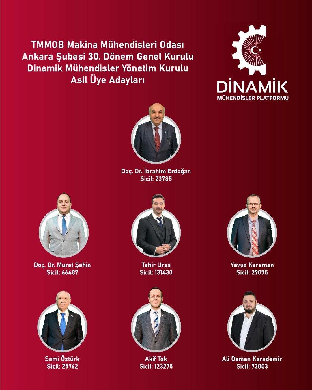 Bu vizyon doğrultusunda Dinamik Mühendisler Platformu, MMO Ankara Şubesi 30. Dönem Genel Kurulu için oluşturduğu yönetim kurulu aday listesini de açıkladı.