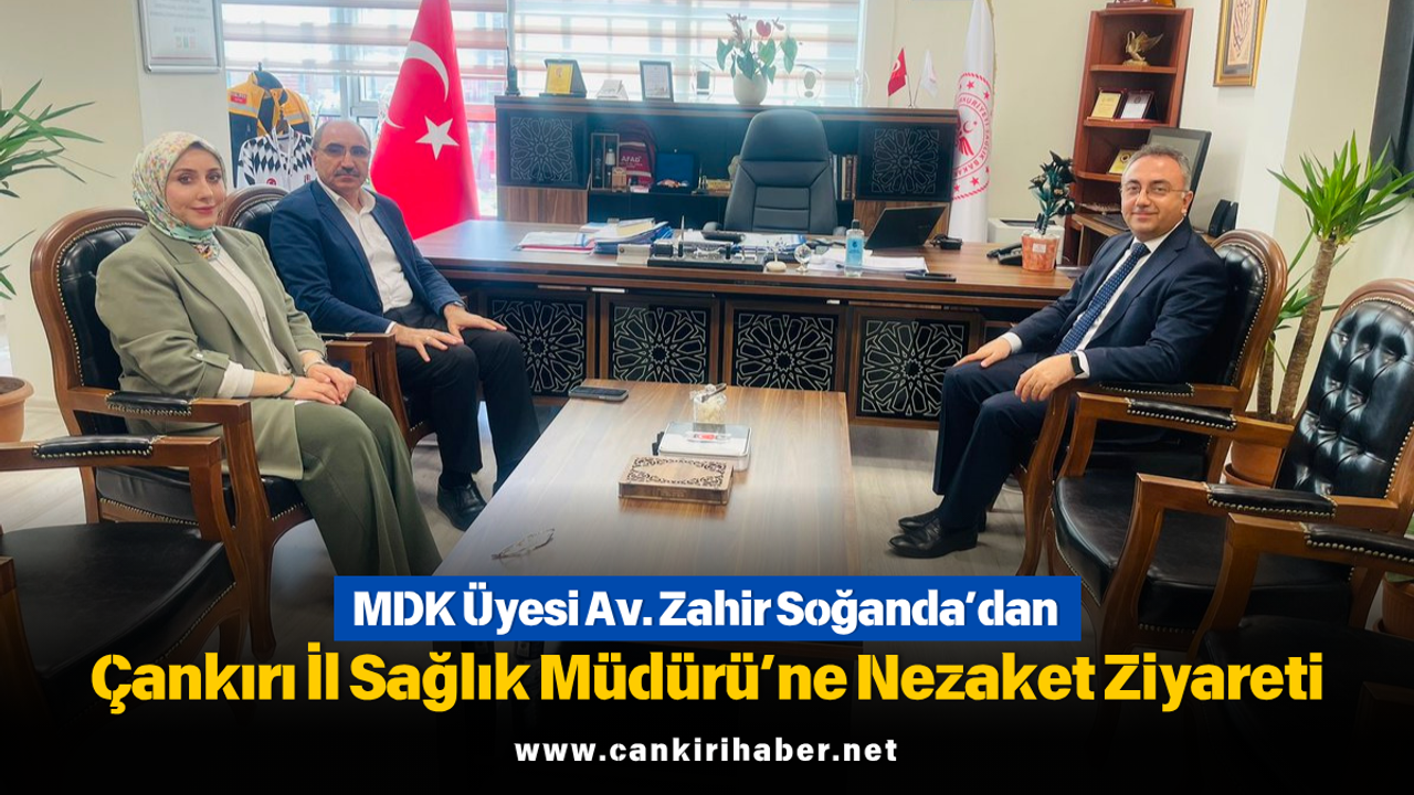 Çankırı İl Sağlık Müdürlüğü, önemli bir ismi ağırladı. AK Parti Merkez Disiplin Kurulu (MDK) Üyesi ve aynı zamanda Sağlık Hizmetleri Başkan Yardımcısı Dr. Şeyma Yüsra Soğanda’nın babası olan Av. Zahir Soğanda, İl Sağlık Müdürü Dr. Öğr. Üyesi Yunus Emre Bulut’u makamında ziyaret etti.