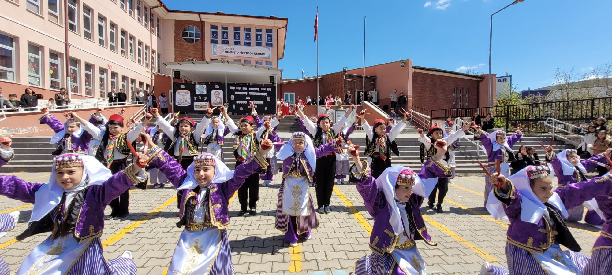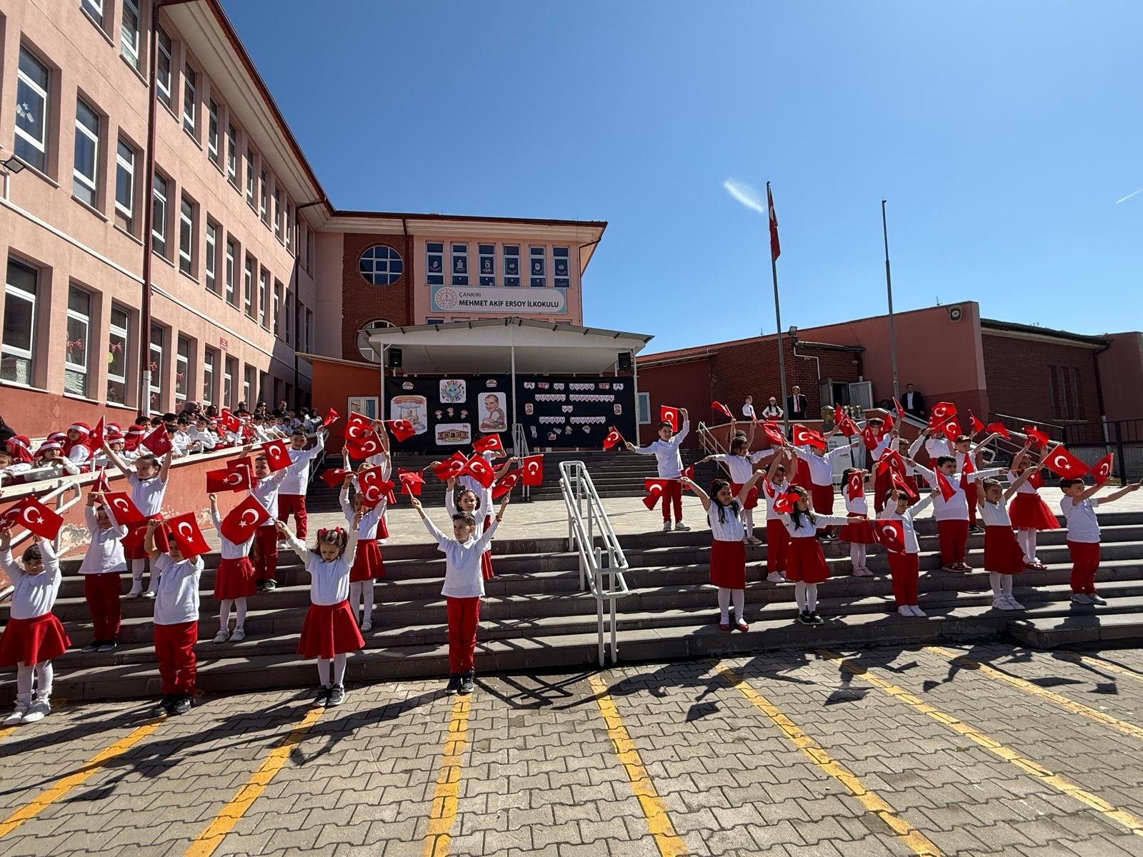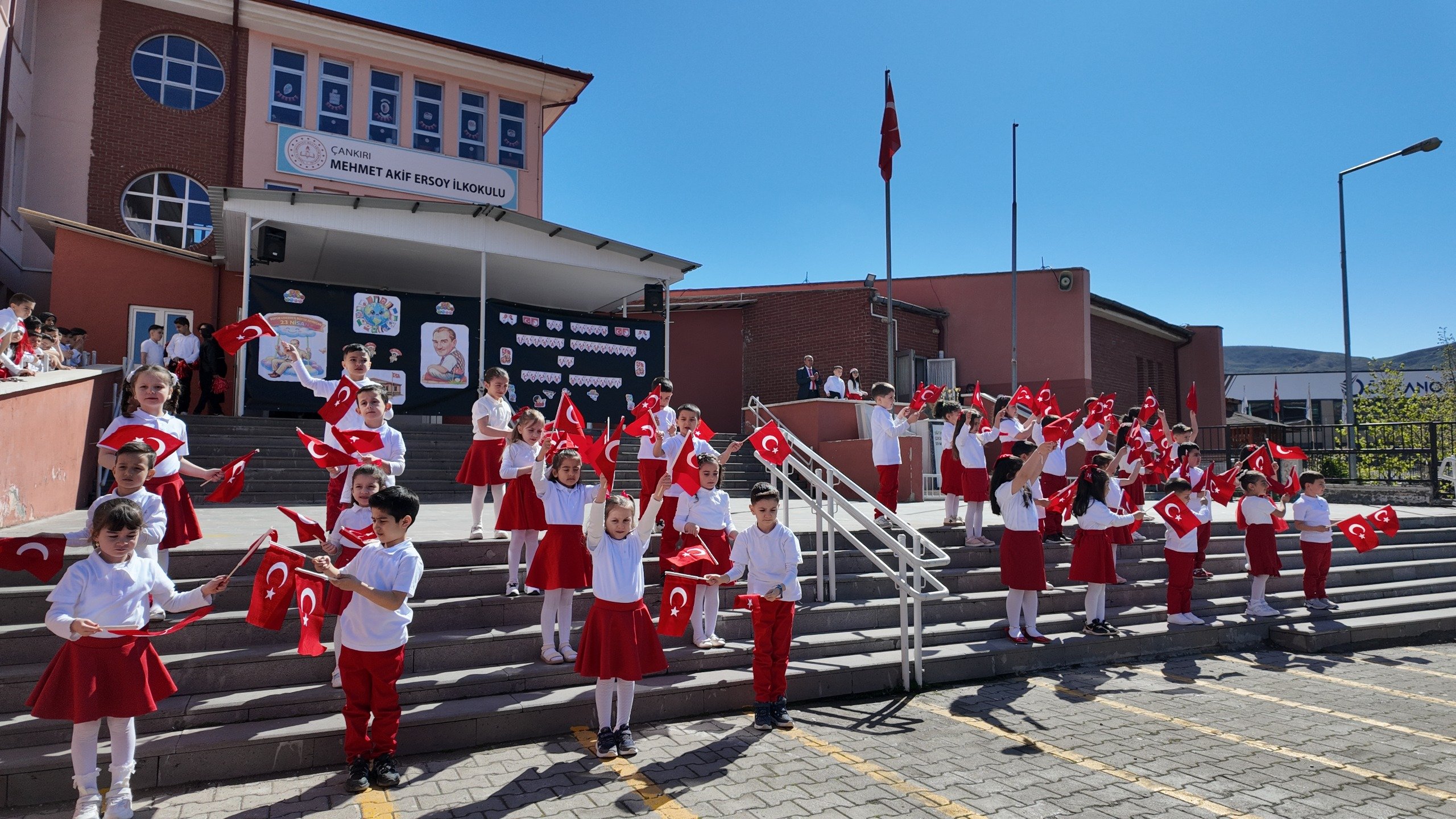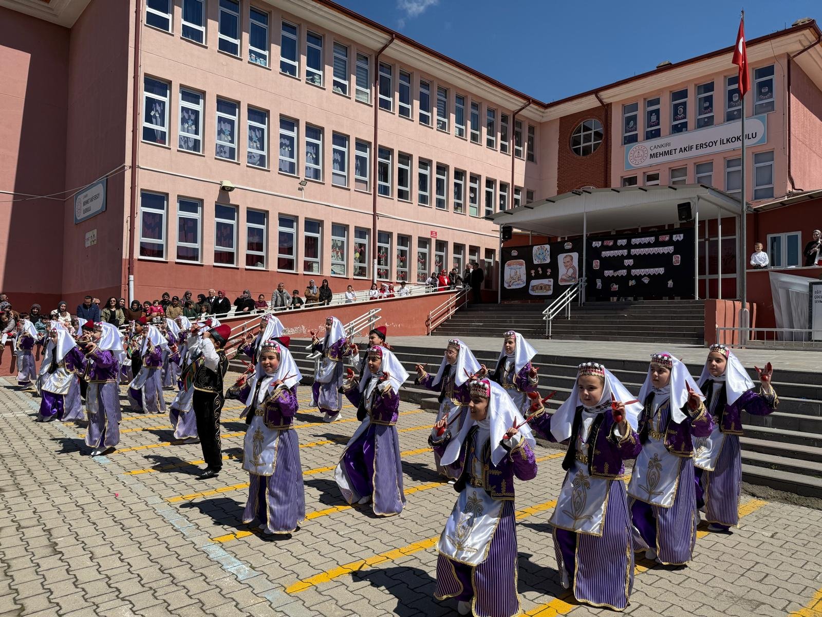 Çankırı Mehmet Akif Ersoy İlkokulu’nda 23 Nisan Ulusal Egemenlik ve Çocuk Bayramı dolayısıyla kutlama programı düzenlendi. Okulda gerçekleştirilen etkinlikte öğrenciler, hazırladıkları çeşitli gösterilerle izleyicilere bayram coşkusunu yaşattı.