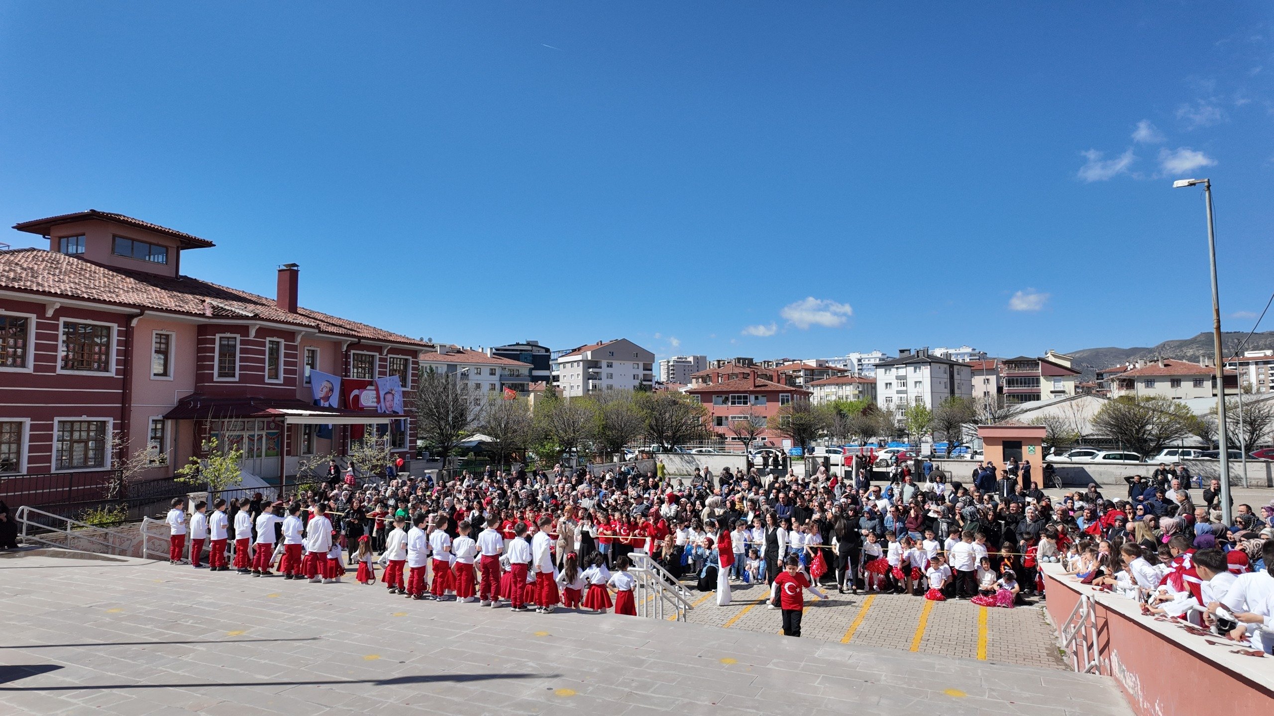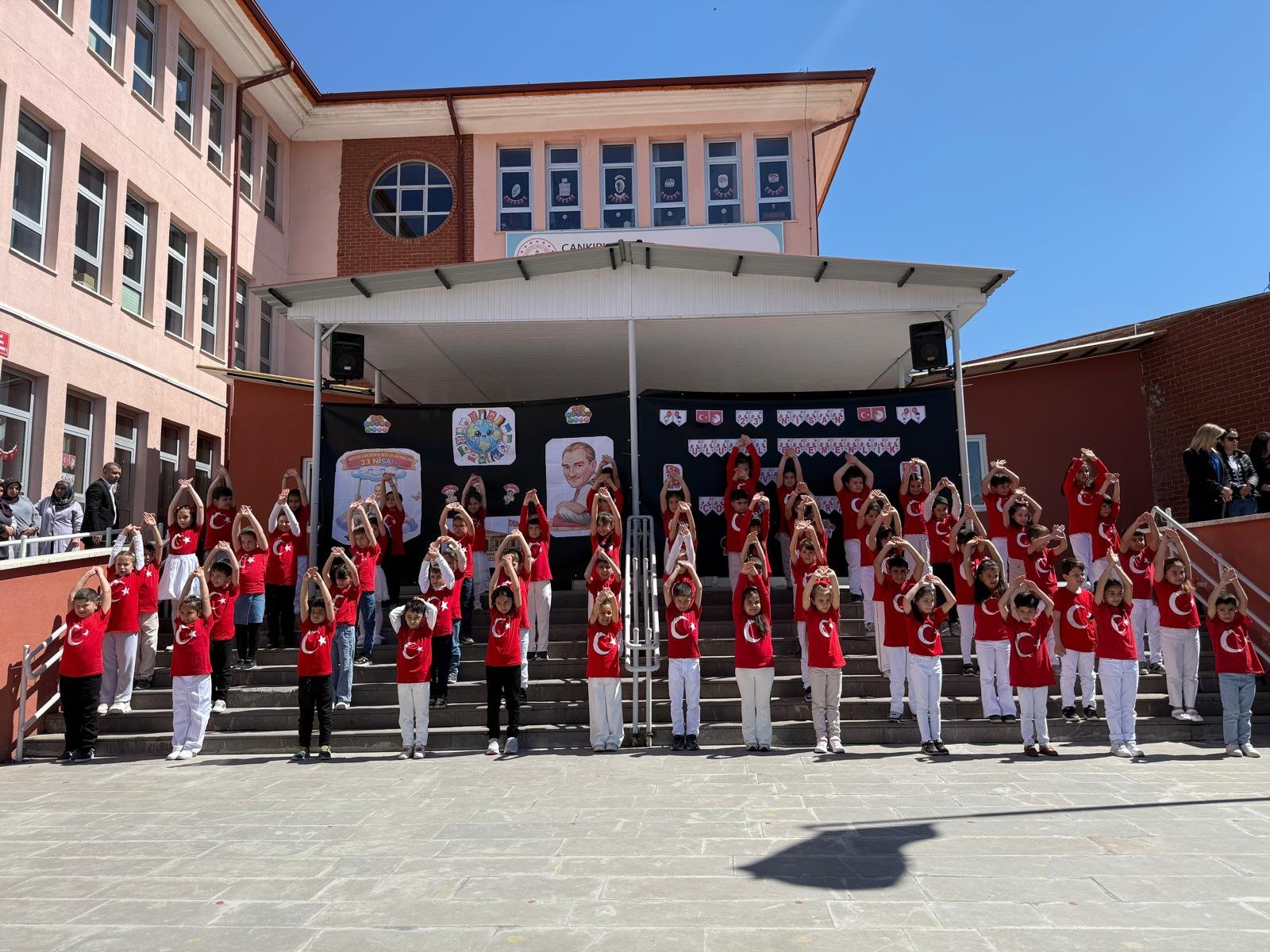 23 Nisan’ın anlam ve önemine uygun olarak hazırlanan programda öğrencilerin heyecanı ve mutluluğu dikkat çekerken, okul bahçesinde bayram atmosferi yaşandı. Öğrencilerin sergilediği gösteriler sırasında renkli görüntüler ortaya çıktı.