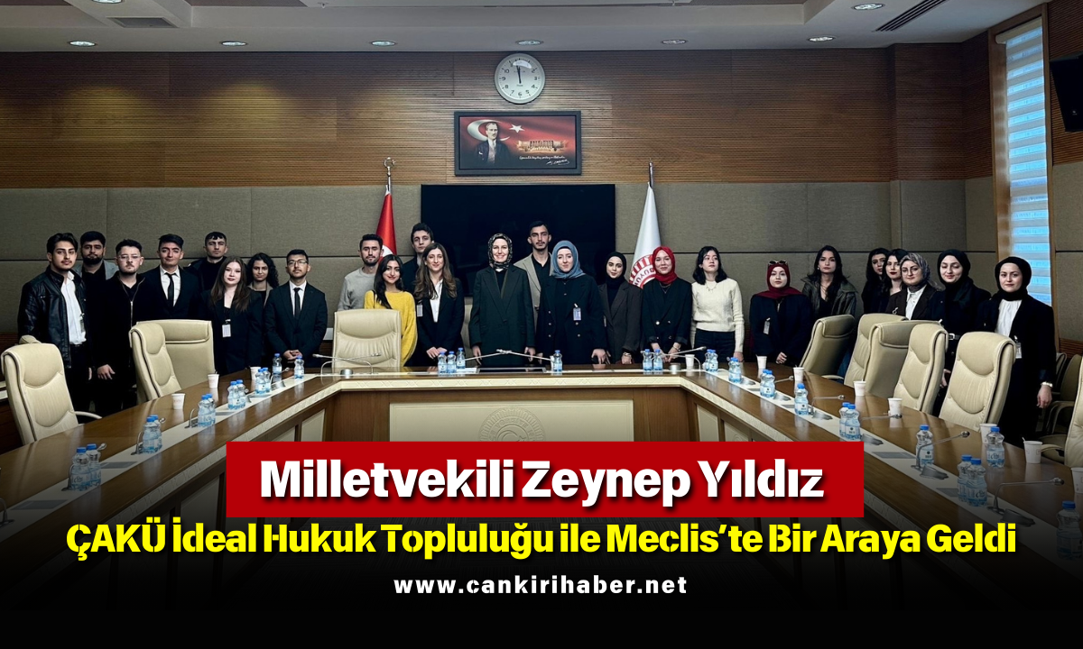 Türkiye Büyük Millet Meclisi, bu hafta genç hukukçuların anlamlı ziyaretine ev sahipliği yaptı. AK Parti Ankara Milletvekili Zeynep Yıldız, Çankırı Karatekin Üniversitesi İdeal Hukuk Topluluğu öğrencilerini Gazi Meclis’te ağırlayarak hem hukuk hem de yasama süreçleri üzerine kapsamlı bir sohbet gerçekleştirdi.