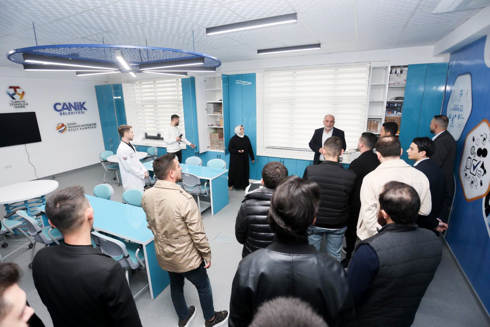 Program kapsamında Genç Müstakil Sanayici İş Adamları Derneği (MÜSİAD) Samsun Şubesi Yönetim Kurulu Başkanı Hasan Can Liva ve yönetim kurulu üyeleri kampüsü ziyaret etti. Başkan Sandıkçı, heyete derslikler, atölyeler ve keşif alanları hakkında detaylı bilgiler verdi. “Canik’imizde Milli Teknoloji Hamlesi seferberliğimizi sürdürüyor; gençlerimizi bilim ve teknolojiyle buluşturuyoruz. Uygulamalı eğitimler, öğrencilerimizin yeteneklerini keşfetmesine ve teknolojiyi üretme yetkinliğine sahip olmasına imkan tanıyor” dedi.