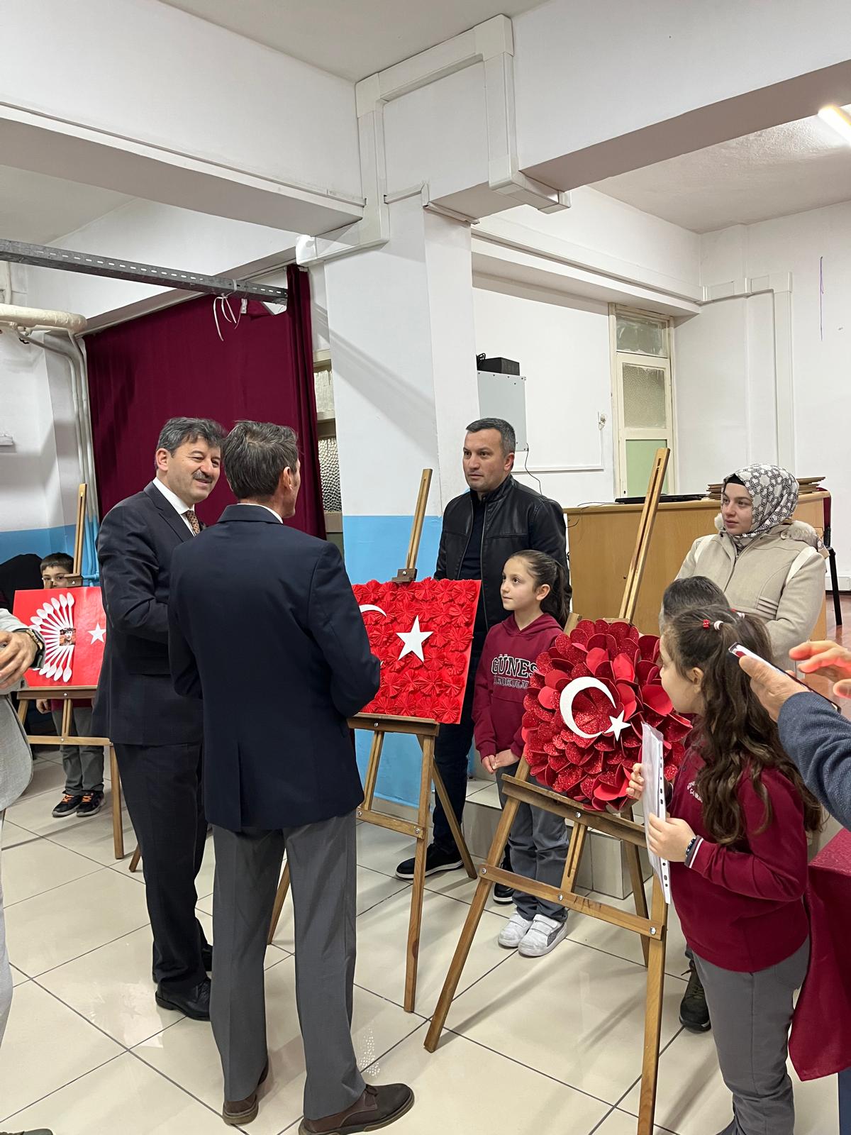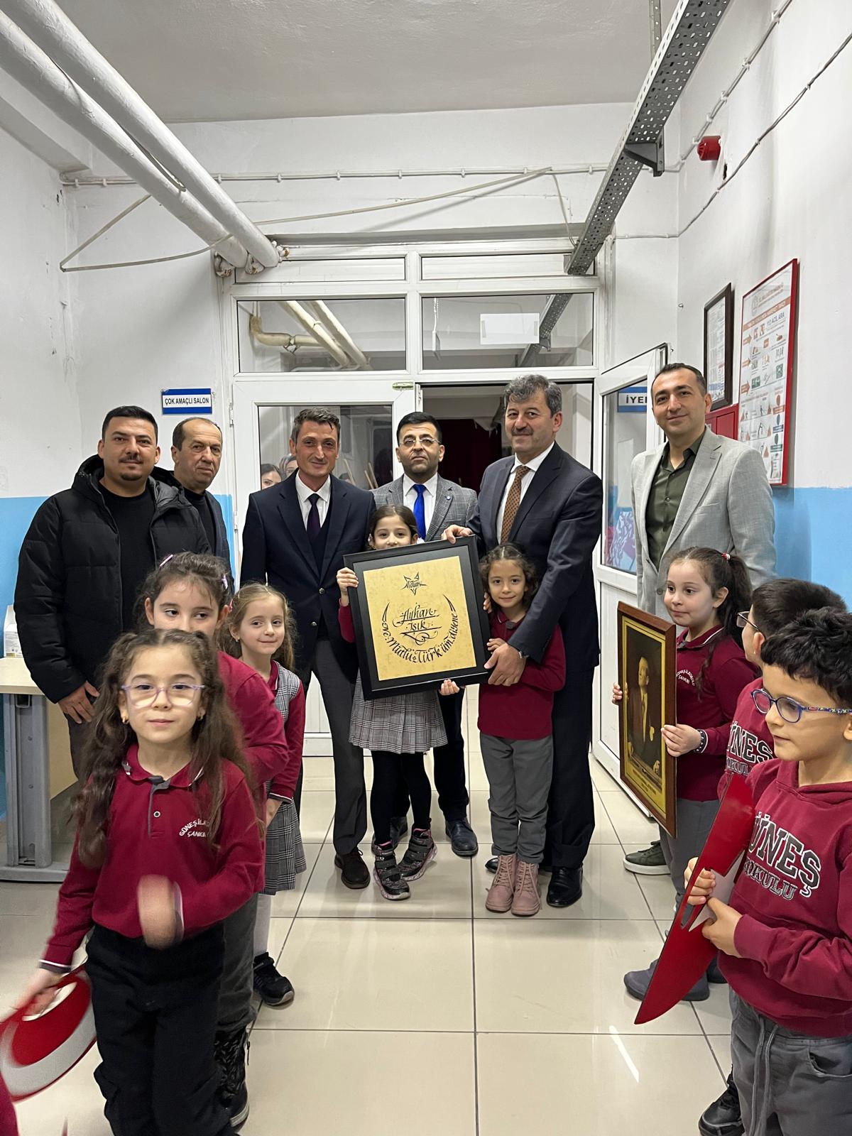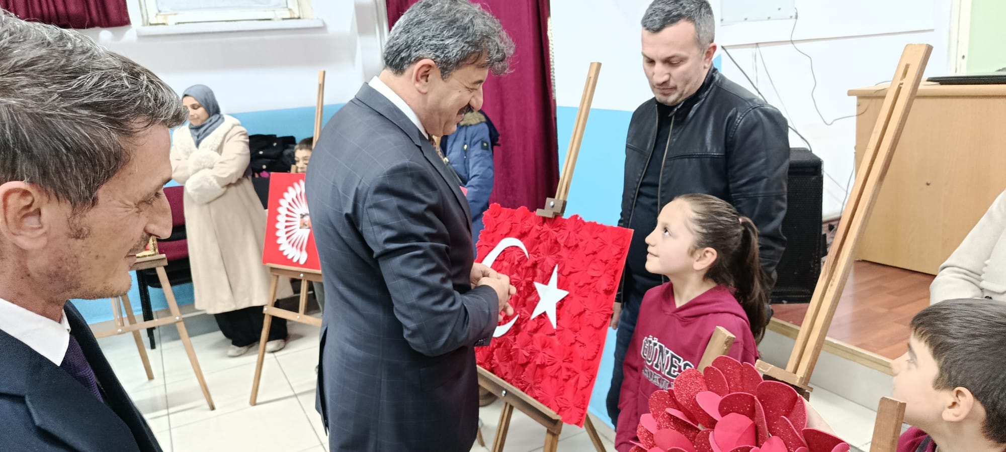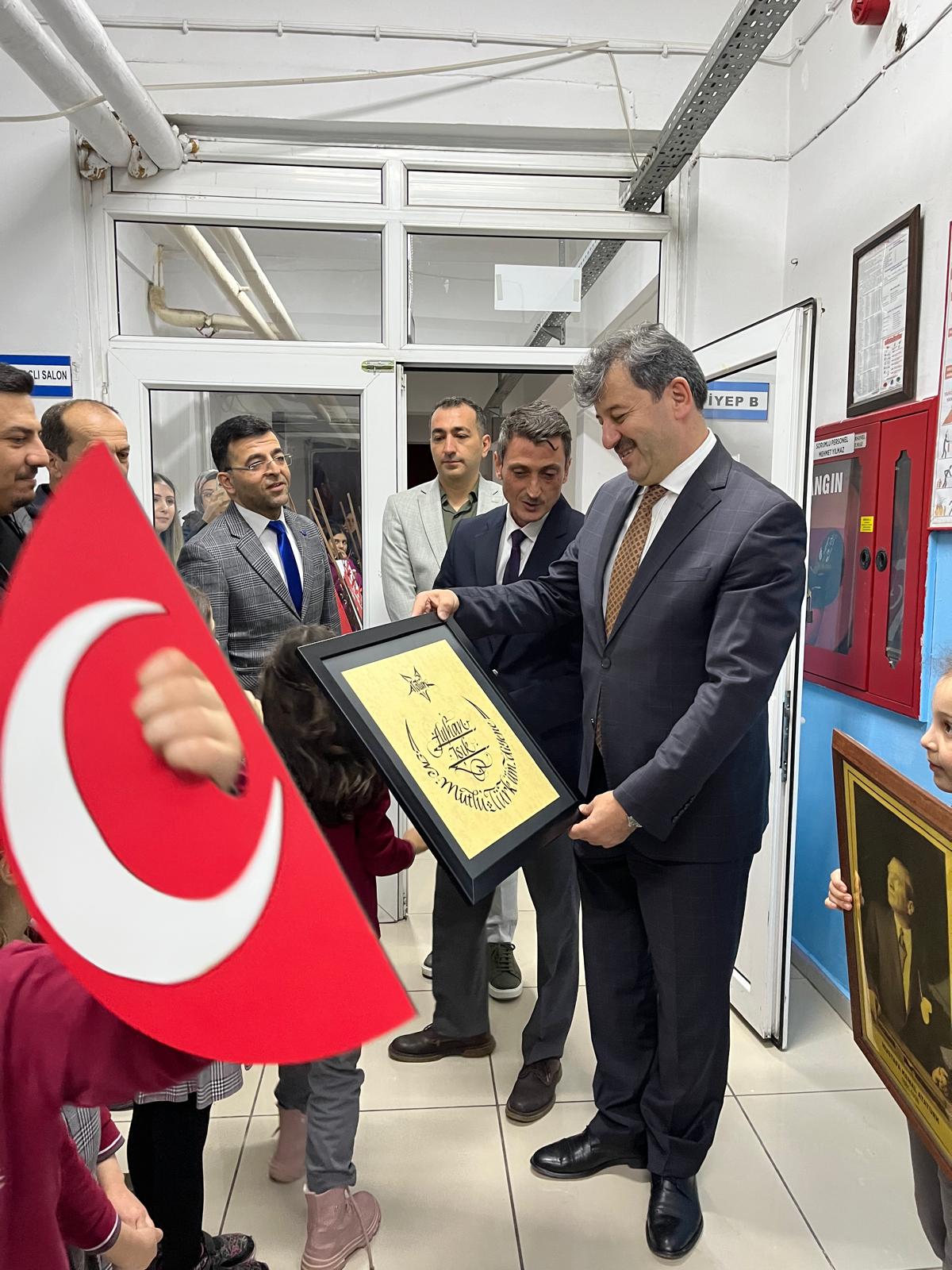 Etkinlik kapsamında düzenlenen programda anlamlı bir hediye takdimi de gerçekleştirildi. Güneş İlkokulu sınıf öğretmeni Aziz Çulahcıoğlu tarafından hazırlanan hat sanatı eseri, İl Millî Eğitim Müdürü Ayhan Işık’a sunuldu. Programda yapılan konuşmalarda, öğrencilerin küçük yaşta millî bilinç ve değerlerle yetişmesinin önemine dikkat çekildi.