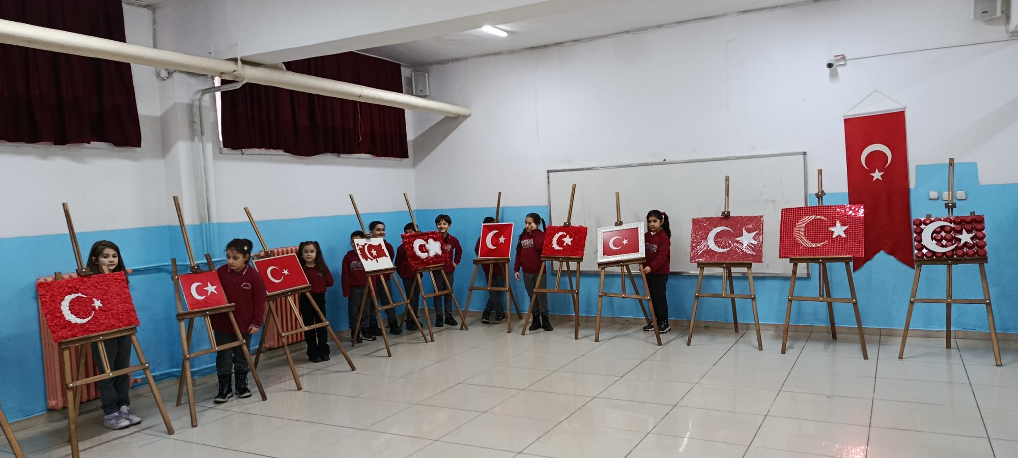 Güneş İlkokulu 2-A sınıfı öğrencileri, öğretmenleri Özhan Özler’in rehberliğinde hazırladıkları “Bayrak Sevgisi” temalı sergi ile anlamlı bir etkinliğe imza attı. Minik öğrencilerin Türk bayrağına duydukları sevgi ve saygıyı sanatla buluşturduğu sergi, hem veliler hem de davetliler tarafından yoğun ilgi gördü.