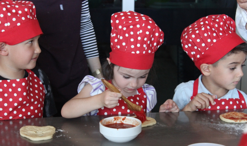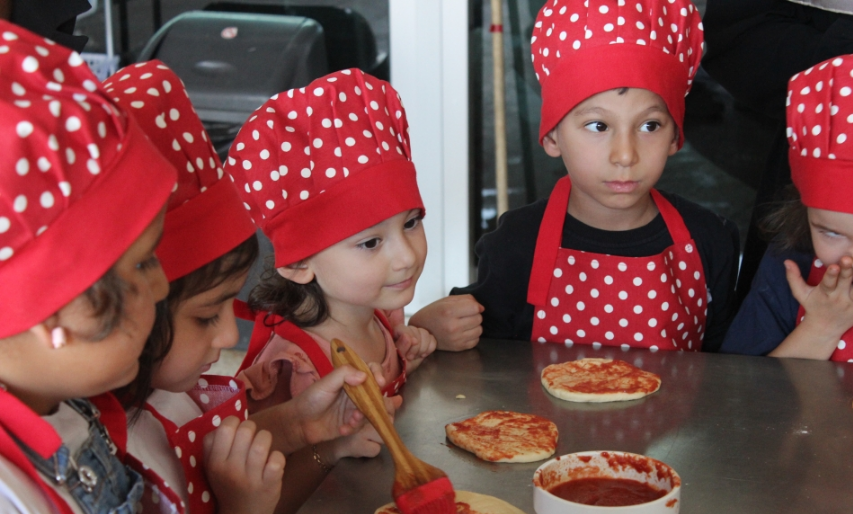 Ziyaretin en keyifli anlarından biri, öğrencilerin kendi seçtikleri malzemelerle pizzalarını hazırlayıp fırına vermesiydi. Pizzaların pişmesini beklerken okulun sera alanında domates toplayan çocuklar, ardından hayvancılık bölümünü gezerek inekleri besledi.