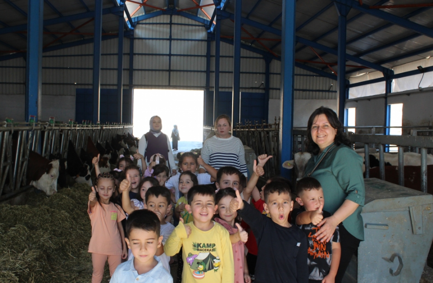 Minik ziyaretçiler, hem üretim süreçlerini gözlemledi hem de tarımın eğlenceli yönünü deneyimledi. Günün sonunda, kendi yaptıkları pizzaları afiyetle yiyen öğrenciler unutulmaz bir gün geçirdi.