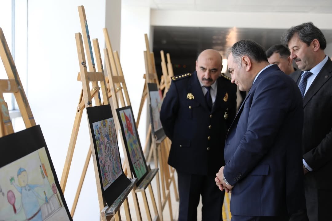 Törenin ardından, öğrencilerin hazırladığı resimlerin yer aldığı sergi gezildi. Katılımcılar, çocukların hayal gücünü yansıtan eserleri ilgiyle inceledi.