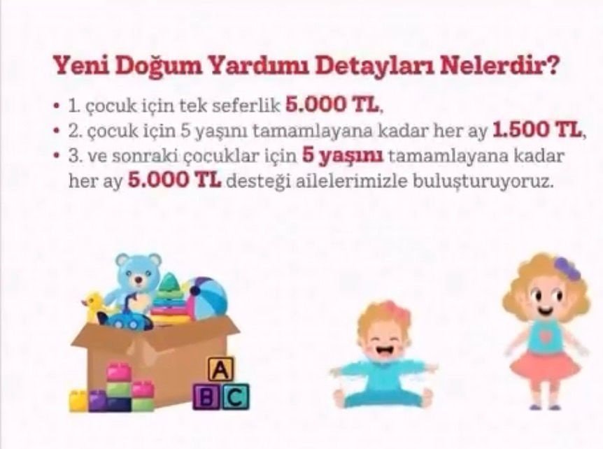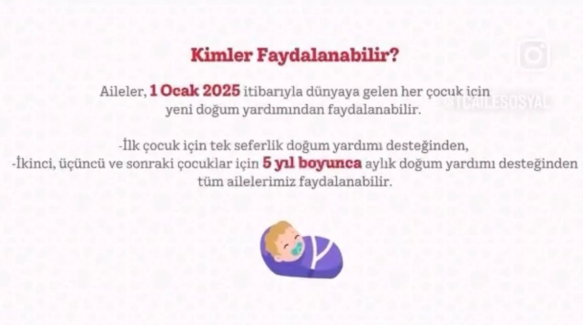 Uygulamanın, özellikle artan yaşam maliyetleri karşısında ailelerin yükünü hafifletmesi ve doğum oranlarını desteklemesi amaçlanıyor. Sağlanan bu desteklerin, çocukların temel ihtiyaçlarının karşılanmasına katkı sunması bekleniyor.
