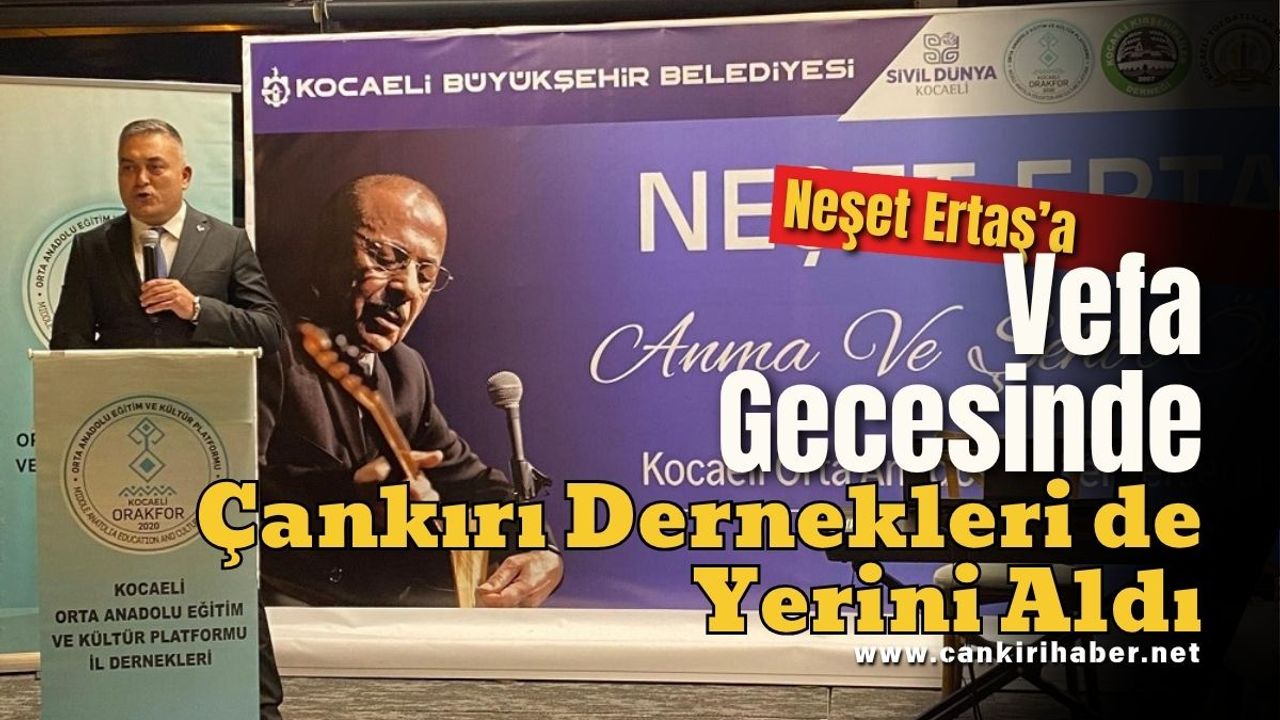 Kocaeli’de düzenlenen “Neşet Ertaş Anma ve Şehir Ödülleri Programı”, büyük halk ozanı Neşet Ertaş’ın 13. ölüm yıldönümünde anlamlı bir atmosferde gerçekleştirildi. Kocaeli Büyükşehir Belediyesi ve Kocaeli Orta Anadolu İl Dernekleri Platformu iş birliğiyle organize edilen geceye, Programda Kocaeli Orta Anadolu İl Dernekleri Platformu’na üye olan Niğde, Tokat, Yozgat, Çankırı, Eskişehir, Kırşehir, Niğde Federasyonu da katılarak Bozkırın Tezenesi’ne vefasını gösterdi.