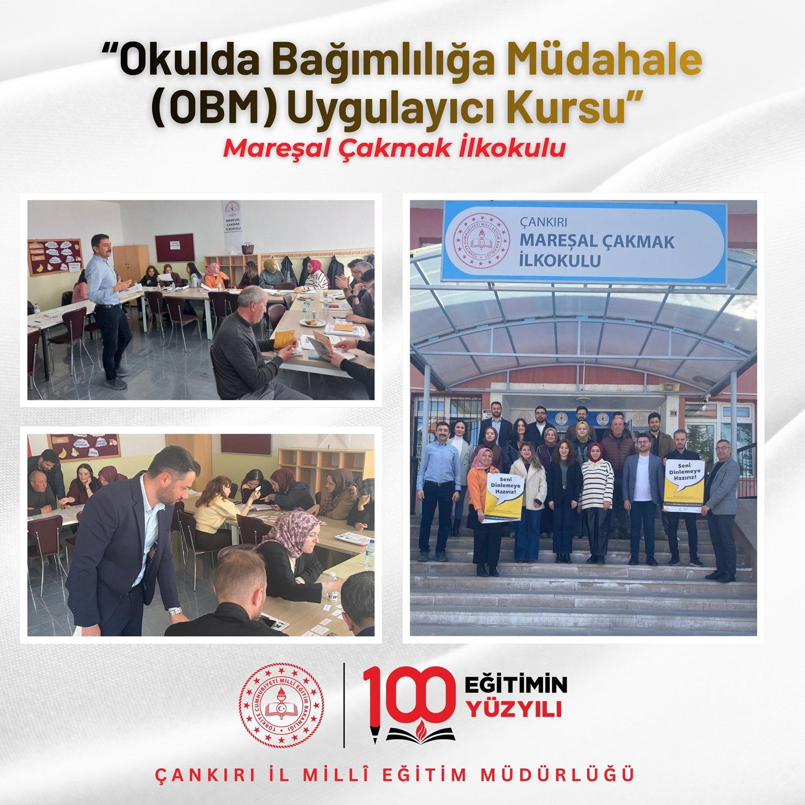 Millî Eğitim Bakanlığı tarafından yerelde yürütülen eğitim çalışmaları kapsamında düzenlenen “Okulda Bağımlılığa Müdahale (OBM) Uygulayıcı Kursu” başarıyla tamamlandı. Mareşal Çakmak İlkokulu’nun ev sahipliğinde gerçekleştirilen program, 13-17 Nisan 2026 tarihleri arasında yoğun bir eğitim süreciyle yürütüldü.