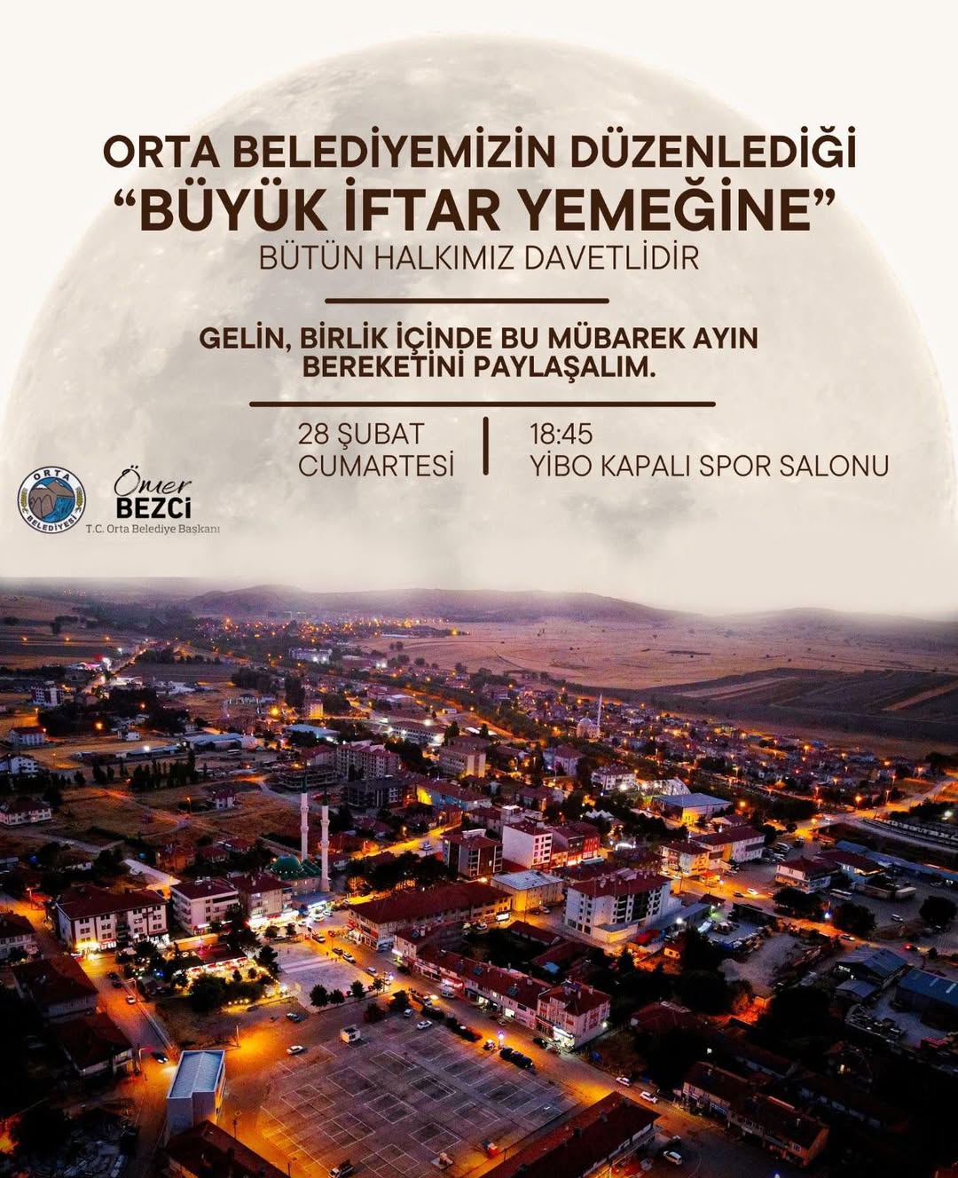 Ramazan ayının paylaşma, dayanışma ve kardeşlik duygularını pekiştirdiğine dikkat çeken Orta Belediyesi, tüm vatandaşları iftar programına davet etti. 28 Şubat Cumartesi günü saat 18.45’te YİBO Kapalı Spor Salonu’nda gerçekleştirilecek olan programda, yüzlerce vatandaşın aynı sofrada buluşması bekleniyor.