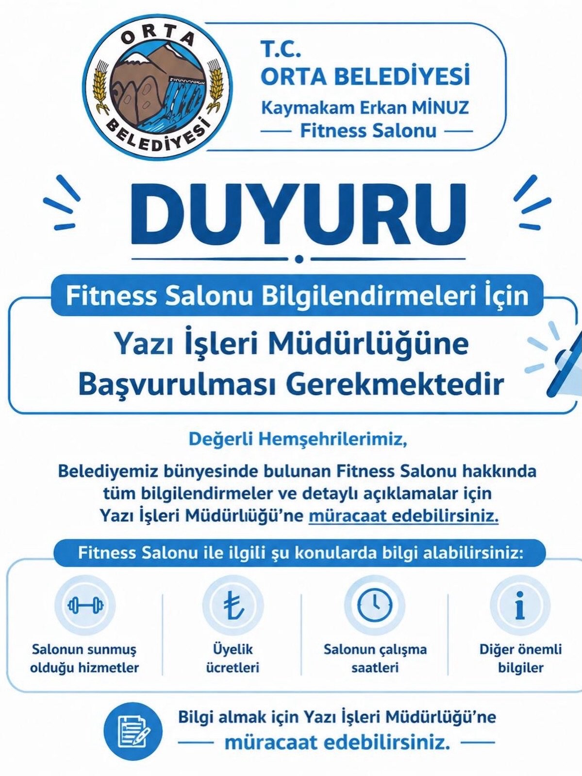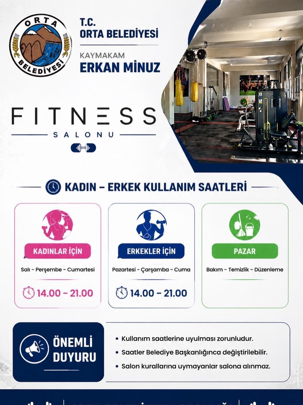 Orta’da hizmete giren fitness salonu, ilçede spor alanında atılan önemli adımlardan biri olarak değerlendiriliyor.