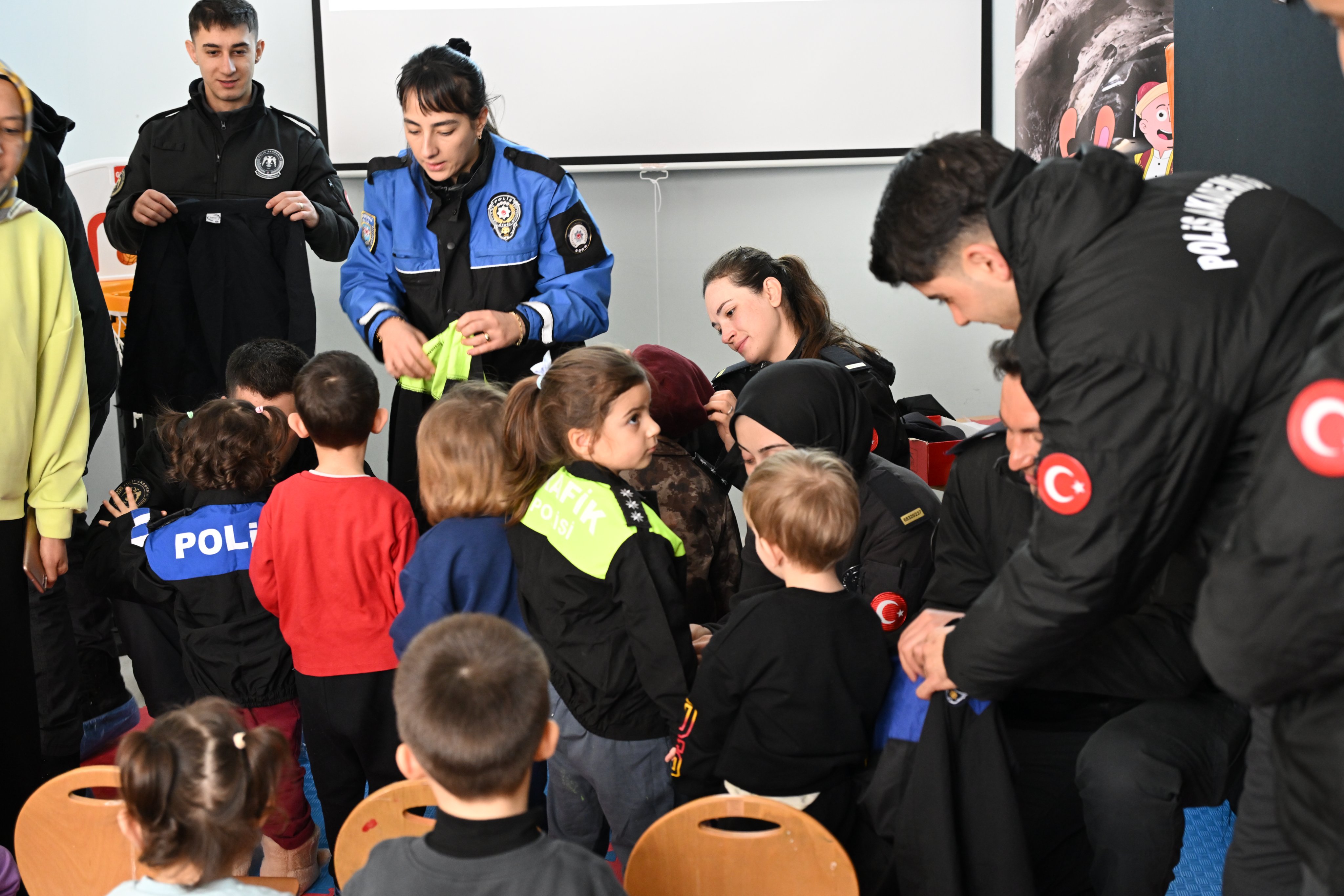Etkinlik boyunca oldukça keyifli anlar yaşayan minik öğrenciler, polislerle yakından tanışma fırsatı buldu. Çocukların merak ettiği sorular da tek tek yanıtlanarak interaktif bir ortam oluşturuldu.