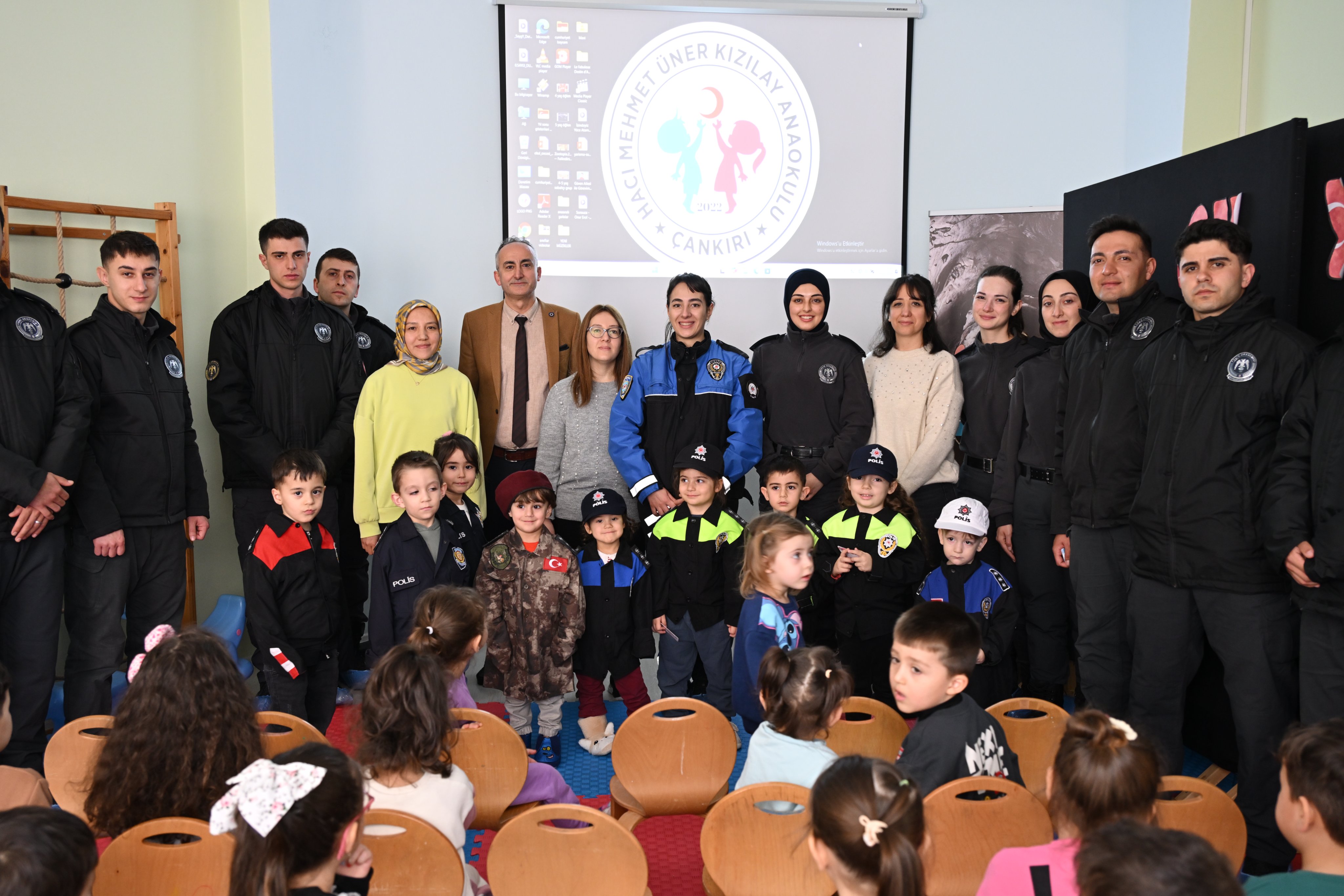 Çankırı İl Emniyet Müdürlüğü, toplumla olan bağlarını güçlendirmeye yönelik çalışmalarını sürdürüyor. Bu kapsamda Toplum Destekli Polislik Şube Müdürlüğü ekipleri, anlamlı bir etkinliğe imza atarak anaokulu öğrencileriyle bir araya geldi.