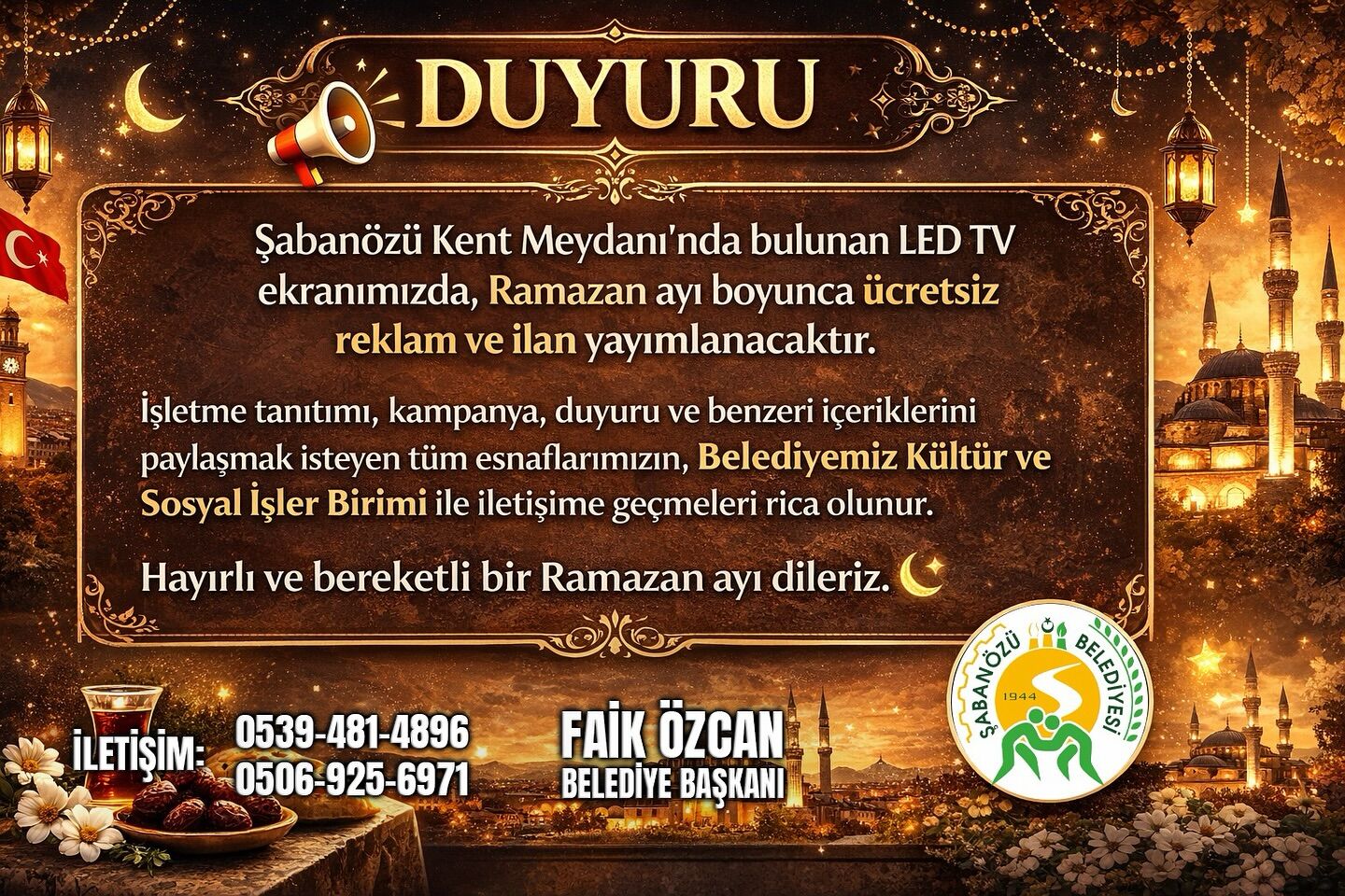 Ramazan ayı öncesinde duyurulan bu uygulamanın, ilçe ekonomisine canlılık kazandırması ve yerel esnafın müşteri potansiyelini artırması hedefleniyor. İlçe merkezinde yoğun olarak kullanılan LED ekran sayesinde, esnafların kampanya, indirim ve ürün tanıtımlarının geniş kitlelere ulaşması sağlanacak.