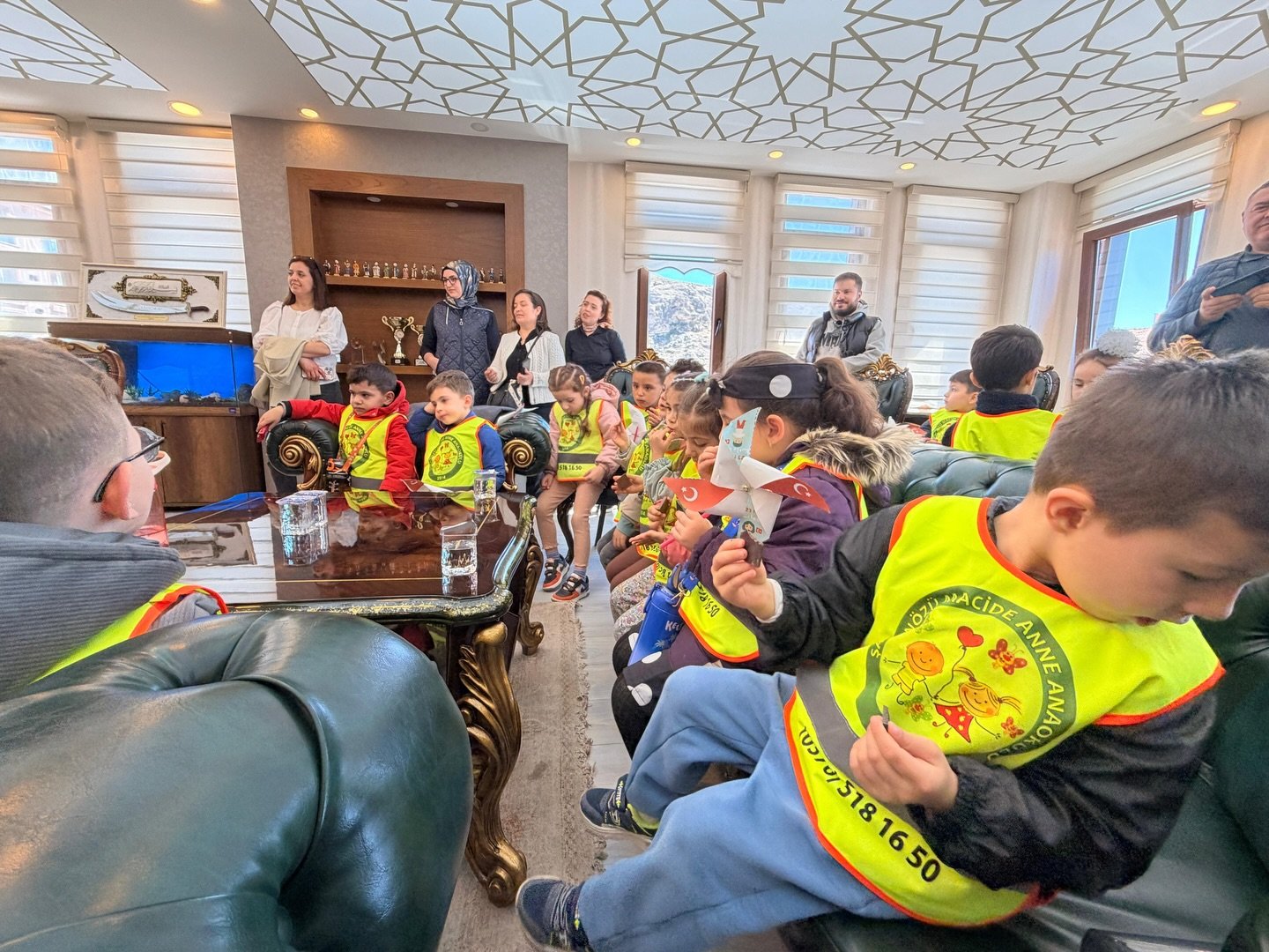 Ziyaret kapsamında çocuklarla yakından ilgilenen belediye yetkilileri, minik misafirlerle sohbet ederek onların hayal dünyalarına ortak oldu. Çocukların içten gülüşleri ve merak dolu soruları, belediye binasında sıcak bir atmosfer oluşturdu.