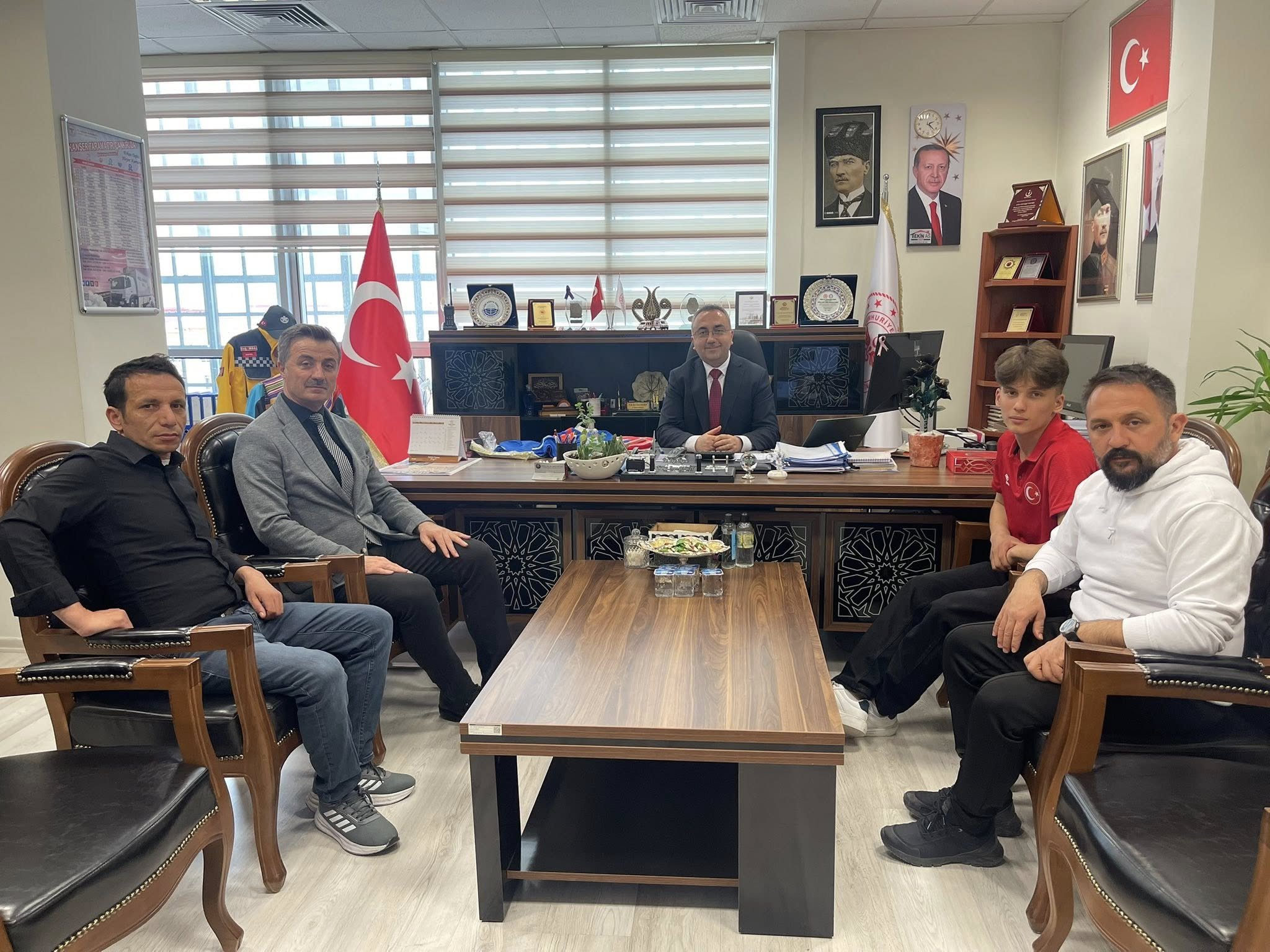 ÖZEL HABER/Çankırı’nın başarılı milli sporcusu, Mersin’de düzenlenen Okul Sporları Gençler A-B Türkiye Halter Şampiyonası’nda Türkiye birincisi, 2023 yılında Moldova’nın Kişinev kentinde düzenlenen Yıldızlar Avrupa Halter Şampiyonası’nda ise Avrupa ikincisi olan Beytullah Öztürk, antrenörü Ömer Öz ve babası Hüseyin Öztürk ile birlikte İl Sağlık Müdürü Yunus Emre Bulut’u makamında ziyaret etti.