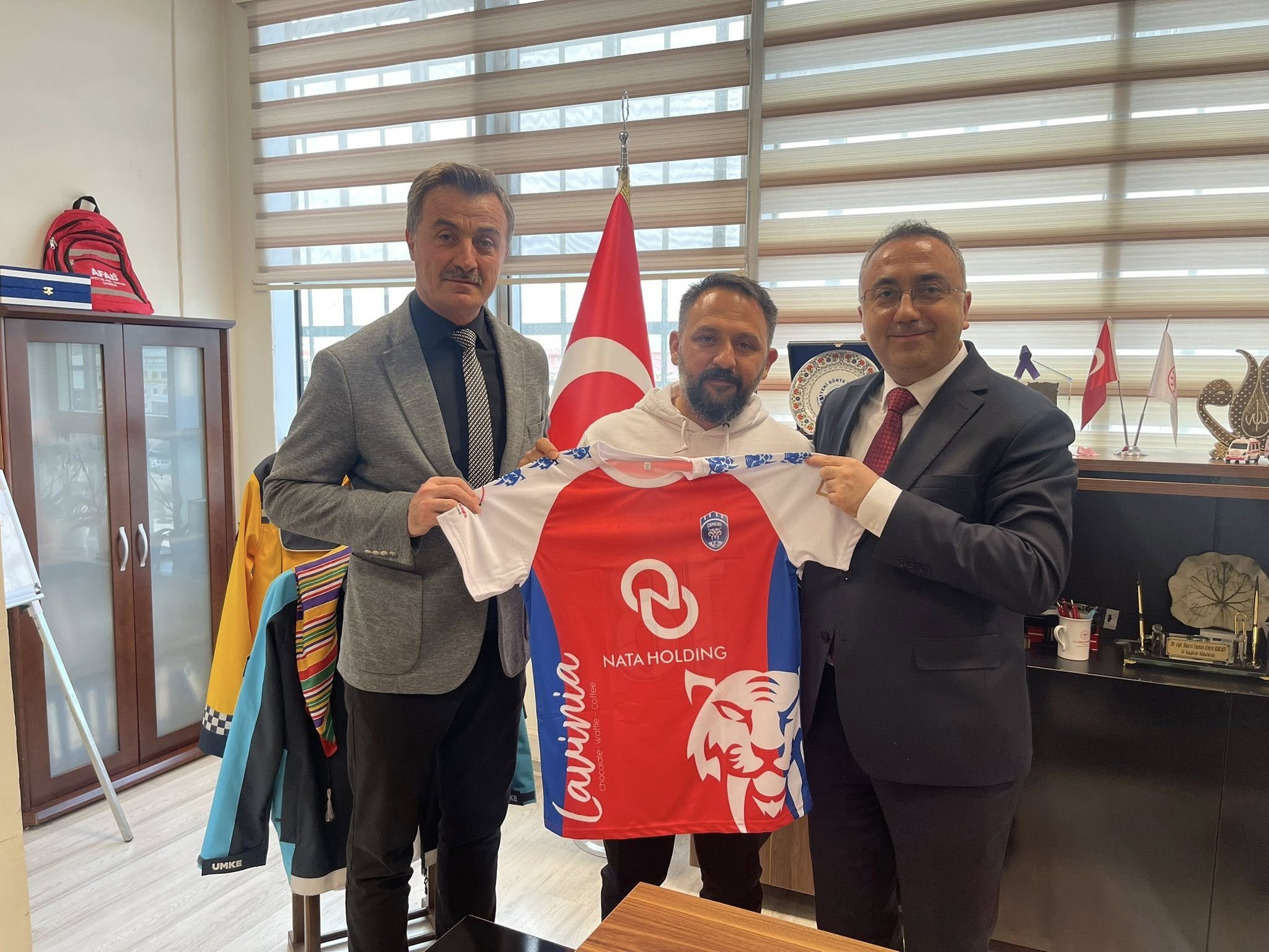 Ziyarette, sporcuya elde ettiği başarılar dolayısıyla tebrikler iletilirken, Beytullah Öztürk ve antrenörü Ömer Öz’e Çankırıspor forması hediye edildi.