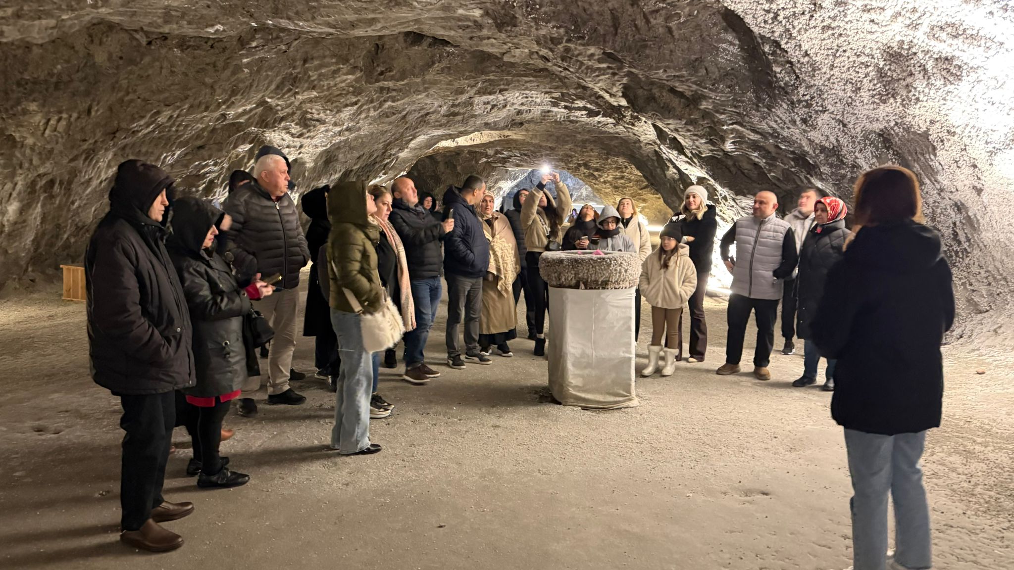Gezi programının önemli duraklarından biri, yaklaşık 5 bin yıllık geçmişiyle dünyanın en eski ve en büyük tuz madenlerinden biri olan Çankırı Tuz Mağarası (Yer Altı Tuz Şehri) oldu. Ziyaretçiler, mağara içerisinde yaklaşık 100 yıl önce kullanılan tuz arabaları, bu arabaları çeken 100 yaşından büyük eşek, eski madencilik ekipmanları ve Marmara Üniversitesi Güzel Sanatlar Fakültesi öğrencileri tarafından kaya tuzundan yapılan heykelleri ilgiyle inceledi. Ziyaretin ardından mağara içindeki satış noktalarından Çankırı kaya tuzu satın alındı.