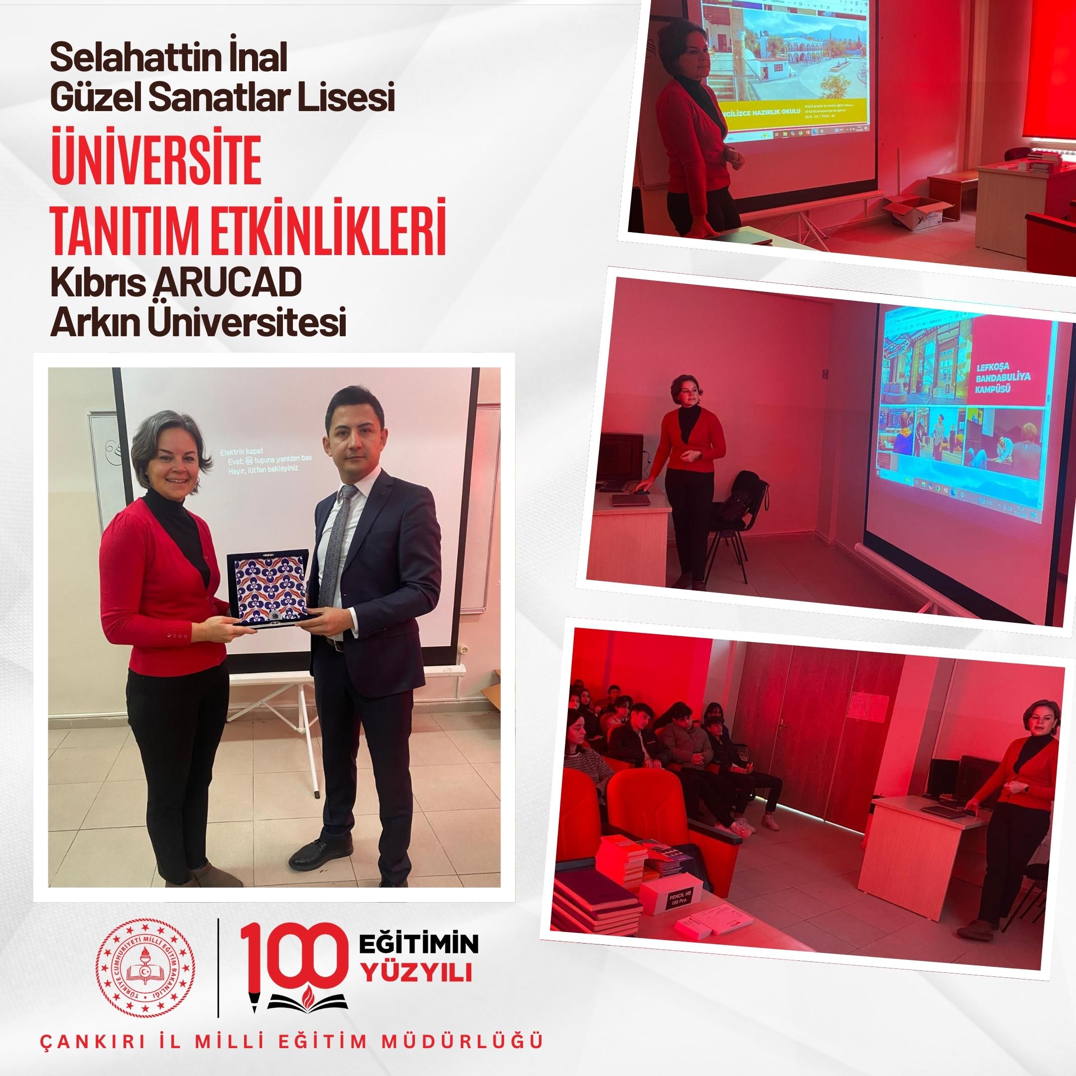 Selahattin İnal Güzel Sanatlar Lisesinde, öğrencilerin üniversite tercih sürecine rehberlik etmek amacıyla üniversite tanıtım etkinliği düzenlendi. Sanat ve tasarım alanında eğitim almak isteyen öğrencilerin yoğun ilgi gösterdiği programda, Kuzey Kıbrıs Türk Cumhuriyeti’nde faaliyet gösteren Arkın Yaratıcı Sanatlar ve Tasarım Üniversitesi (ARUCAD) tanıtıldı.