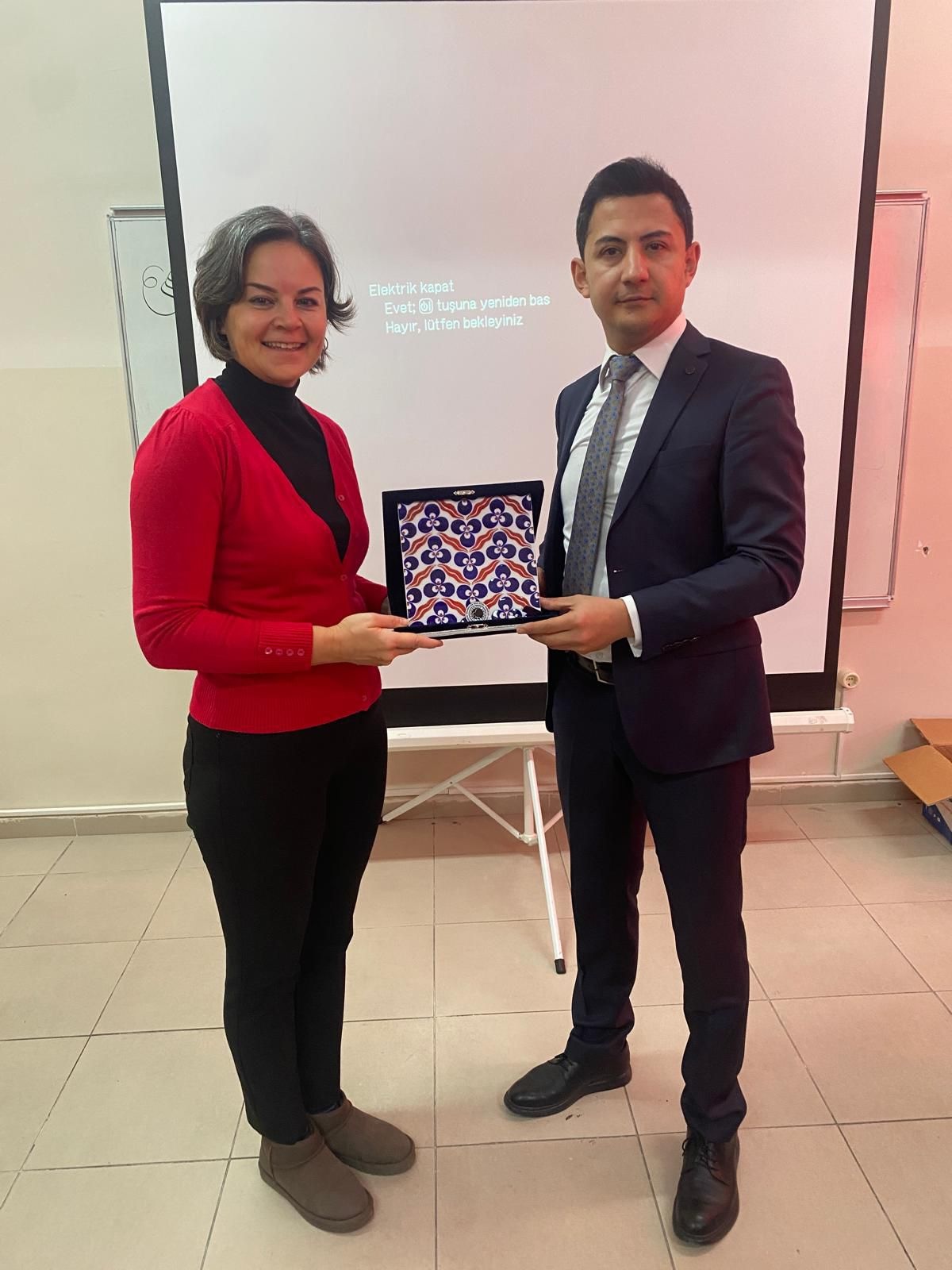 Etkinliğin sonunda Selahattin İnal Güzel Sanatlar Lisesi Okul Müdürü İbrahim Gökmen tarafından, programa katkılarından dolayı Tanıtım Koordinatörü Aylin Önkal’a öğrenciler tarafından hazırlanan seramik tablo hediye edildi. Sanatsal değeri yüksek olan bu anlamlı hediye, günün anısına takdim edildi.