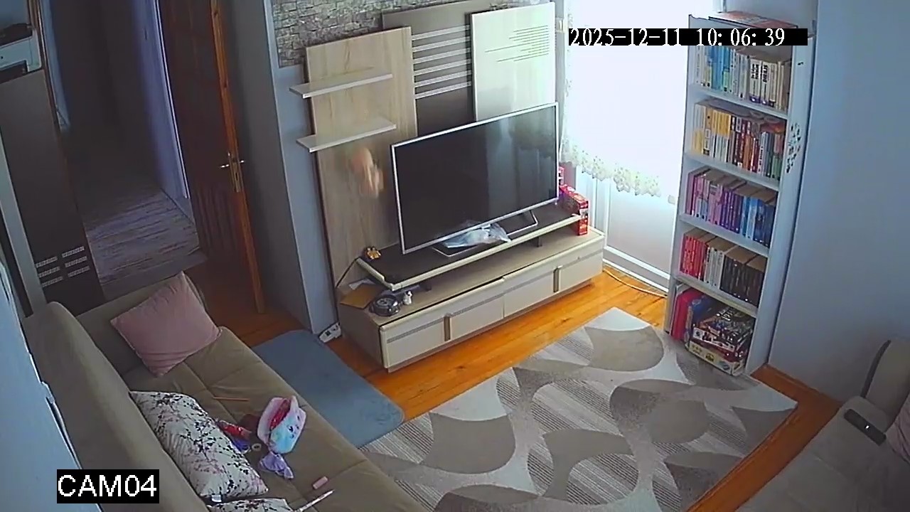 Güvenlik kamerasına yansıyan görüntülerde, bir evde televizyon ünitesinin ve rafların şiddetle sallandığı görüldü. Sarsıntı sırasında raflarda bulunan süs eşyalarının bir kısmı yere düşerek kırıldı. Görüntüler, depremin şiddetini ve ev içindeki etkisini net bir şekilde gözler önüne serdi.